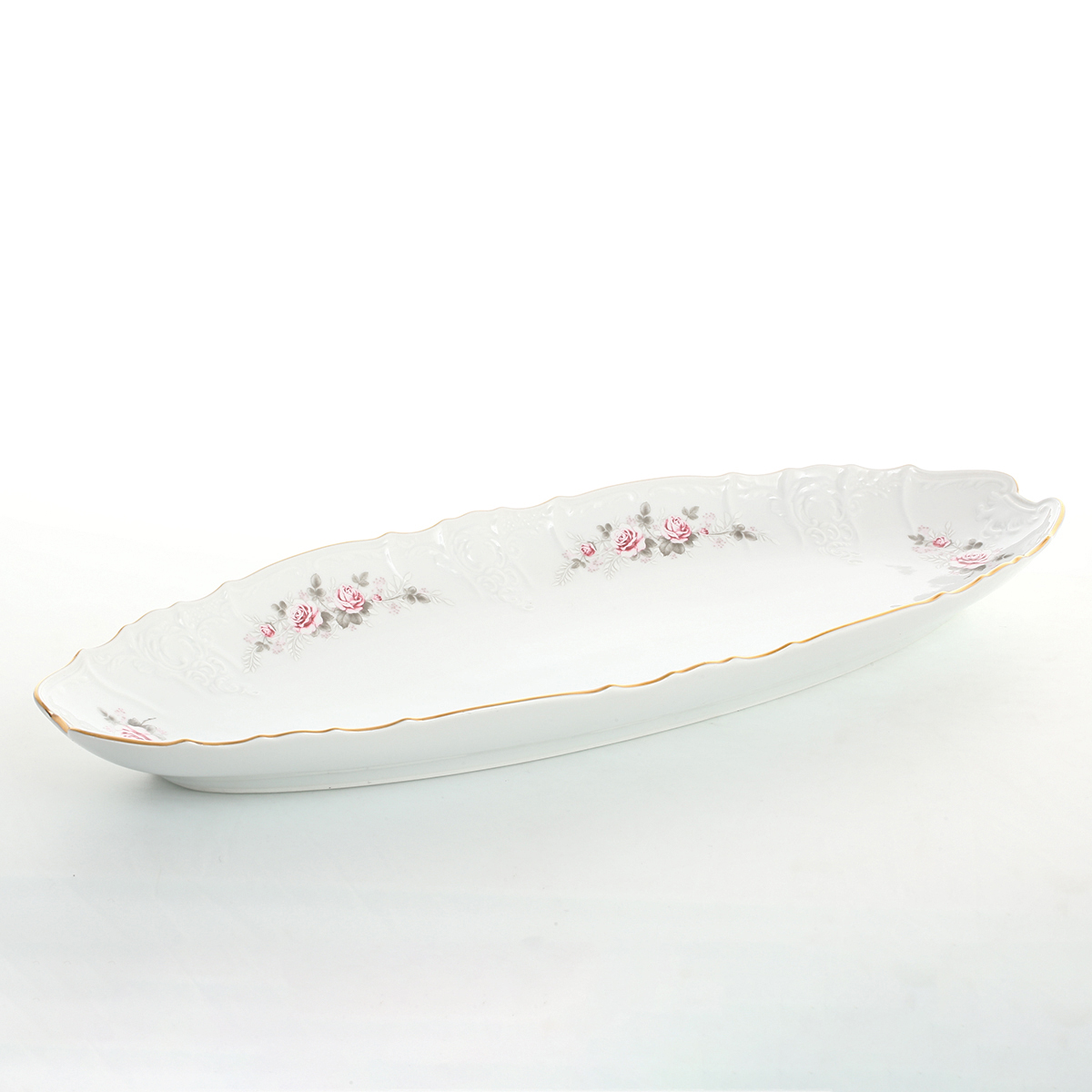 Блюдо для рыбы 52 см бернадотт серая роза золото