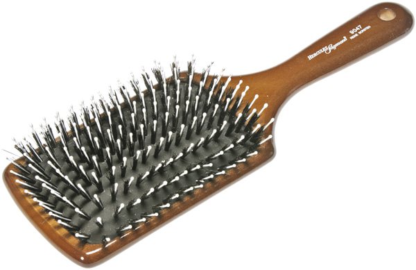 Щётка деревянная с комбинированной щетиной, 11 рядов. Щётка деревянная прямоугольная 11рядов на пневматической подушке с натуральной щетиной и нейлоновыми зубчиками, обладает массажным и антистатическим действием, предназначена для длинных волос. Страна происхождения: Китай Артикул: 9047 Бренд: HERCULES Назначение щетки 2: Для ежедневного использования Размер щетки: Большая Щетина щетки: Комбинированная Назначение щетки: Для укладки
