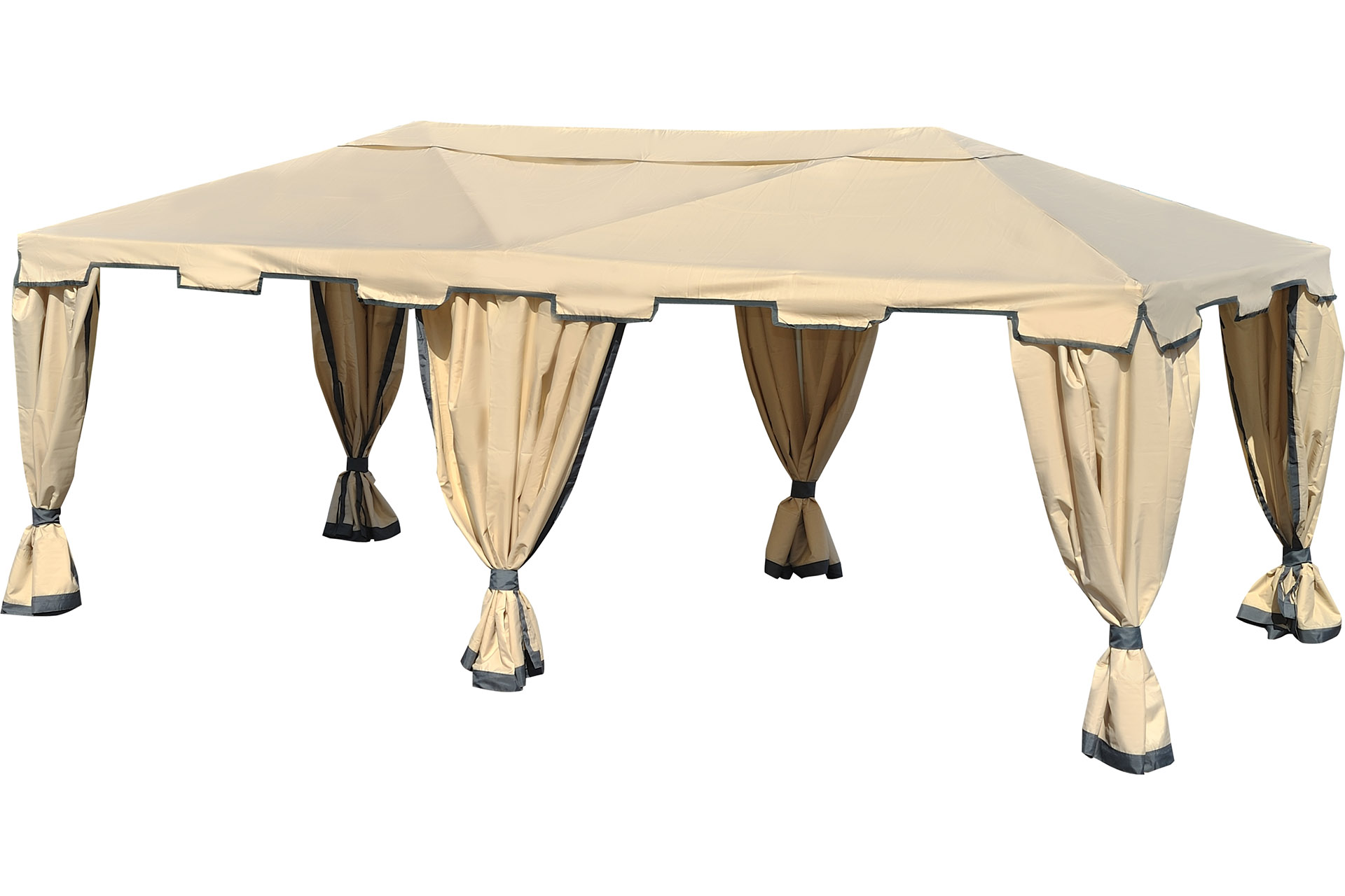 1048 тент шатер садовый green glade 3х6х2,5 м. Тент садовый из полиэстера – практичное и популярное решение для использования на даче, пикниках, шашлыках и кемпинге. Крыша тента защитит от солнца. Тент садовый из полиэстера быстро и несложно монтируется и закрепляется с помощью растяжек. • Комплектация: 6 боковых стенок • Размер: 3х6х2,5 м • Цвет: бежевый • Материал: полиэстер 160 г с полиамидным покрытием • Каркас: металлическая трубка (24х31,5 мм) • Соединения: пластиковые • Карниз: зубчатый • Вес брутто: 28 кг • Размер упаковки: 115х25х25 см