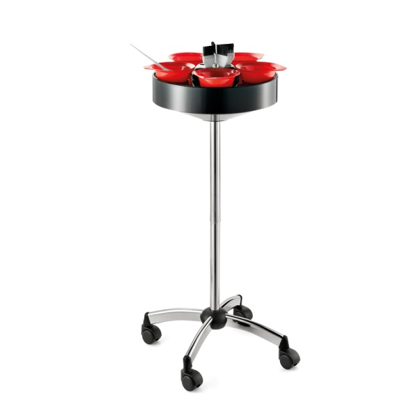 Тележка jolly round color. Тележка из пластика на колесах. Оснащена пятью отделениями под миски для окрашивания, а также пятью отделениями для кистей. Цвет на выбор: - белый; - черный; - серебро. Вес: 4,30 кг; Объем: 0,05 м³. Размер (ДхШхВ): Ø40х94 см Стоимость модели, представленной на фото, может отличаться от цены, указанной на сайте. Артикул: 104 C Бренд: Artecno