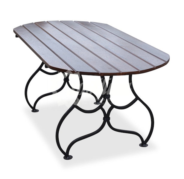 Стол садовый «богема» 1,5 м. Подробные характеристики Стол имеет дополнительную защиту от раскачивания. Материалы: Опоры: Cталь. Покрыты порошковой полимерной краской. Возможность выбора цвета по каталогу RAL. Стандартный цвет (по умолчанию) - черный. Столешница: Брус из хвойных пород древесины - сосна/ель (варианты исполнения: лиственница, композитные материалы) различного сечения. Огнебиозащитные пропитки + тонировочный состав с антисептиком + два слоя яхтного лака с промежуточным шлифованием. Возможность выбора цвета из палитры. Фурнитура: Оцинкованная. Возможность выбора цвета фурнитуры по каталогу RAL. Стандартный цвет (по умолчанию) - серебристый. Возможность использования потайной/скрытой фурнитуры. Технические характеристики: Высота: мм Ширина: 800 мм Длина: 1200 - 3000 мм Ширина столешницы: мм Вес: О модели «Богема» - это садовый стол, который придаёт месту отдыха тепло и уют. Разместите стол в любом месте вашего дачного участка, заказав к нему большой зонт. Вы получите шикарное место для обеда или отдыха всей семьёй, если укомплектуете его скамейками. Варианты цвета на выбор: , палисандр, махагон, тик,