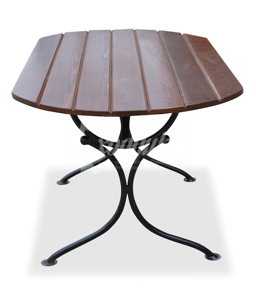 Стол садовый «пассаж» 1,5 м. Подробные характеристики Стол имеет дополнительную защиту от раскачивания. Материалы: Опоры: Cталь. Покрыты порошковой полимерной краской. Возможность выбора цвета по каталогу RAL. Стандартный цвет (по умолчанию) - черный. Столешница: Брус из хвойных пород древесины - сосна/ель (варианты исполнения: лиственница, композитные материалы) различного сечения. Огнебиозащитные пропитки + тонировочный состав с антисептиком + два слоя яхтного лака с промежуточным шлифованием. Возможность выбора цвета из палитры. Фурнитура: Оцинкованная. Возможность выбора цвета фурнитуры по каталогу RAL. Стандартный цвет (по умолчанию) - серебристый. Возможность использования потайной/скрытой фурнитуры. Технические характеристики: Высота: мм Ширина: мм Длина: 1200 - 3000 мм Ширина столешницы: мм Длина столешницы: мм Вес версии 1.2 м: кг Вес версии 1.5 м: кг Вес версии 1.8 м: кг Вес версии 2.0 м: кг Вес версии 2.5 м: кг Вес версии 3.0 м: кг О модели «Пассаж» - это садовый стол, который придаёт месту отдыха тепло и уют. Разместите стол в любом месте вашего дачного участка, заказав к нему большой зонт. Вы получите шикарное место для обеда или отдыха всей семьёй, если укомплектуете его скамейками. Варианты цвета на выбор: , палисандр, махагон, тик, груша, еловая зелень, рябина,