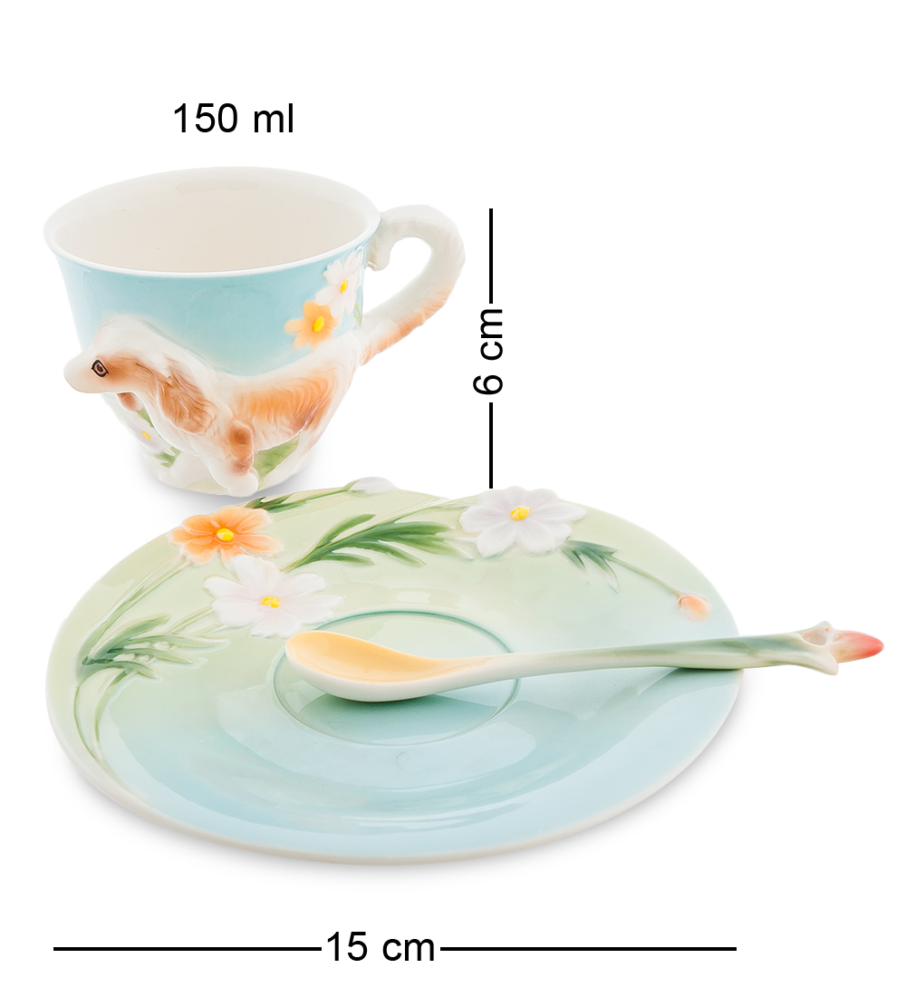 Fm-69/ 4 чайная пара спаниель (pavone). Параметры товара Материал: Фарфор Страна производства: Китай Страна бренда: Италия Размеры изделия Высота: 7 см; Диаметр: 15 см; Вес: 0.4 кг. Объем посуды: 150 мл Доп. характеристики Кол-во персон: 1; Размеры упаковки Длина: 21 см; Ширина: 16 см; Высота: 16 см; Вес: 0.65 кг. Размеры короба (12 шт.) Длина: 44 см; Ширина: 34 см; Высота: 49 см; Вес: 8.5 кг.