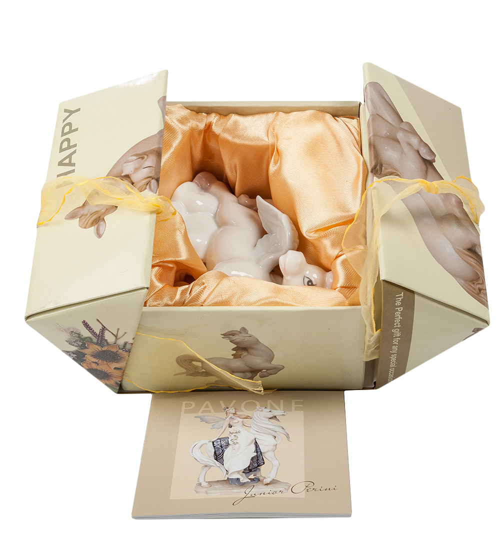 Jp-61/ 3 фигурка лошадка-ангелочек (pavone). Параметры товара Материал: Фарфор Страна производства: Китай Страна бренда: Италия Размеры изделия Длина: 9 см; Ширина: 6 см; Высота: 11 см; Вес: 0.14 кг. Размеры упаковки Длина: 13 см; Ширина: 13 см; Высота: 8 см; Вес: 0.22 кг.