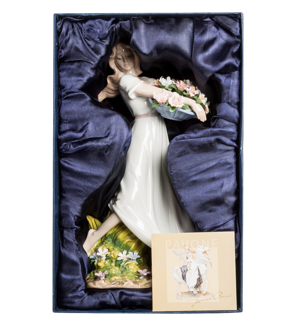 Jp-29/29 статуэтка девушка с цветами (pavone). Материал: Фарфор Страна производства: Китай Страна бренда: Италия Длина: 16.00 см Ширина: 11.00 см Высота: 30.00 см Вес: 1.17 кг.
