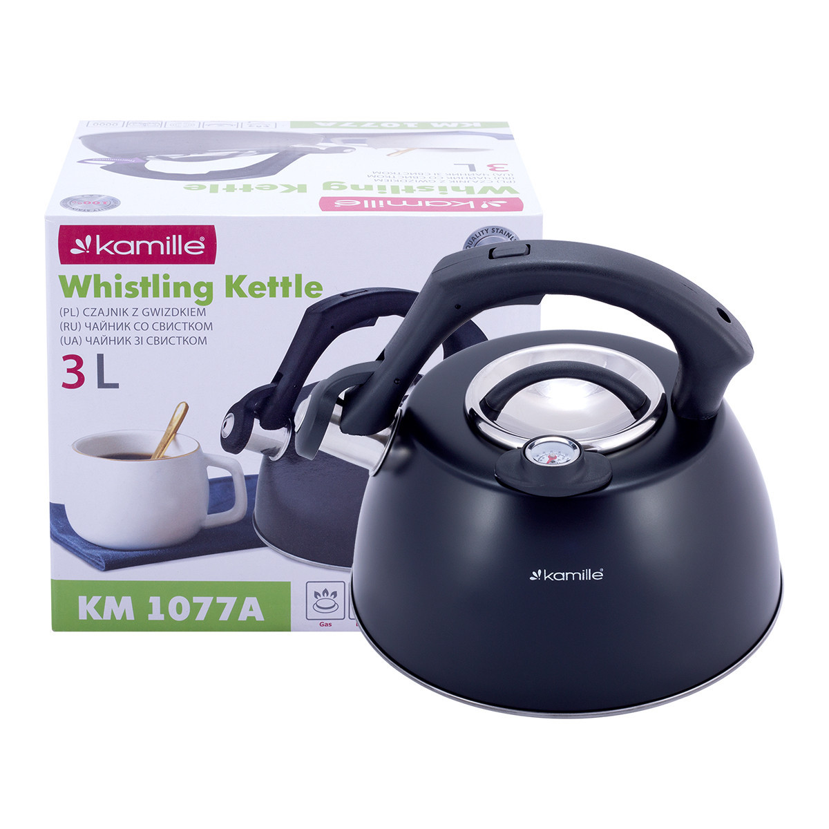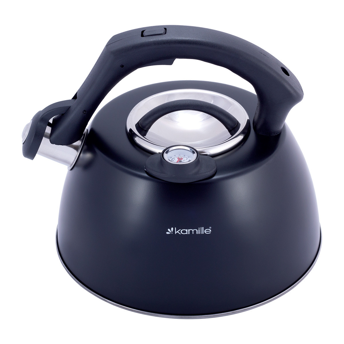 Чайник Kamille 3л из нержавеющей стали со свистком и термометром для индук