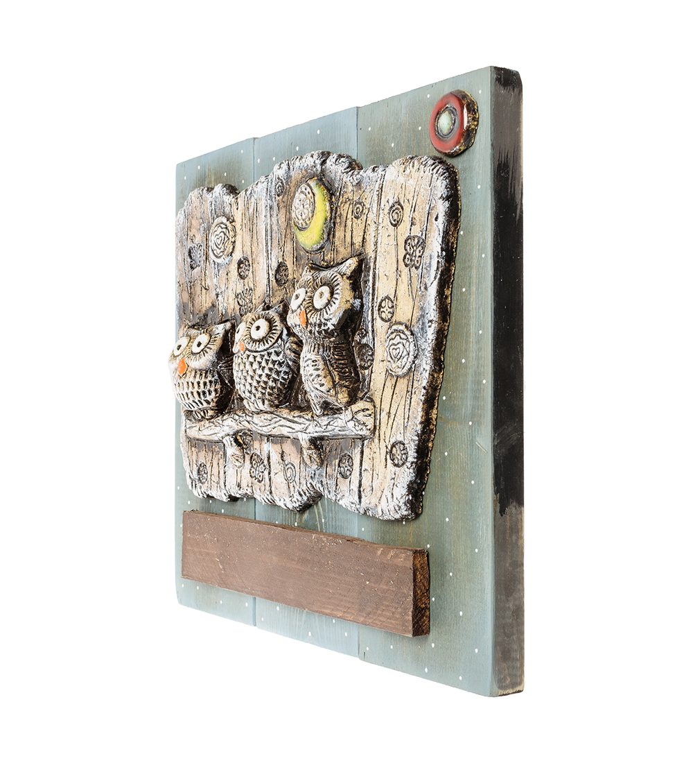 Kk-527 панно совы властители ночи шамот. Параметры товара Материал: Шамот, дерево Страна производства: Россия Страна бренда: Россия Размеры изделия Длина: 30 см; Ширина: 5 см; Высота: 28 см; Вес: 1.8 кг.