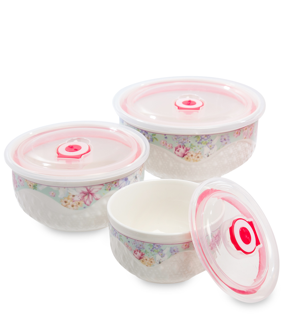 Mug-162/1 набор из трех мисок с крышкой цветочная волна