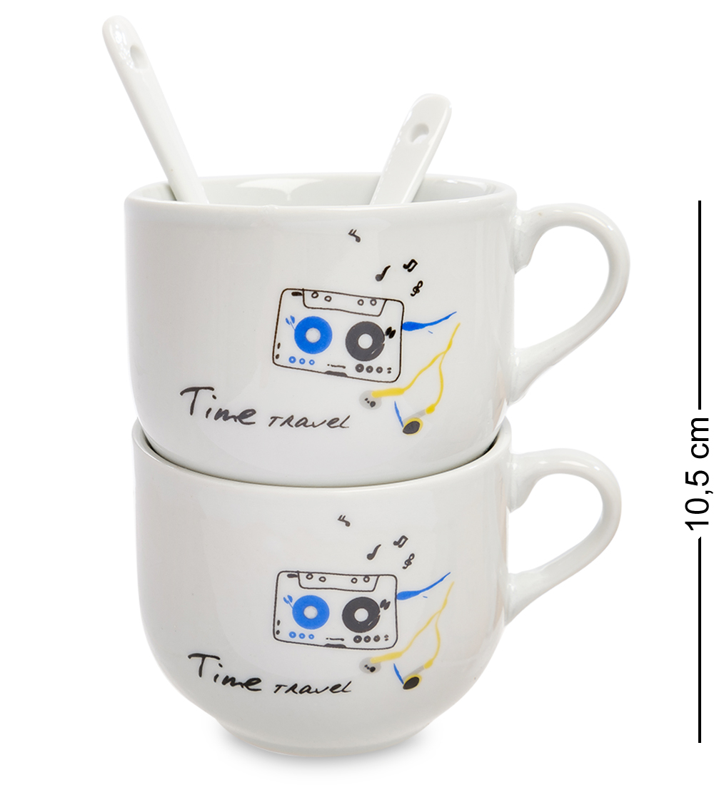 Mug-168/4 набор из двух кружек время путешествий. Параметры товара Материал: Керамика Страна производства: Китай Страна бренда: Россия Размеры изделия Длина: 10 см; Ширина: 7.5 см; Высота: 10.5 см; Вес: 0.337 кг. Объем посуды: 150 мл Размеры упаковки Длина: 15 см; Ширина: 15 см; Высота: 8 см; Вес: 0.402 кг.