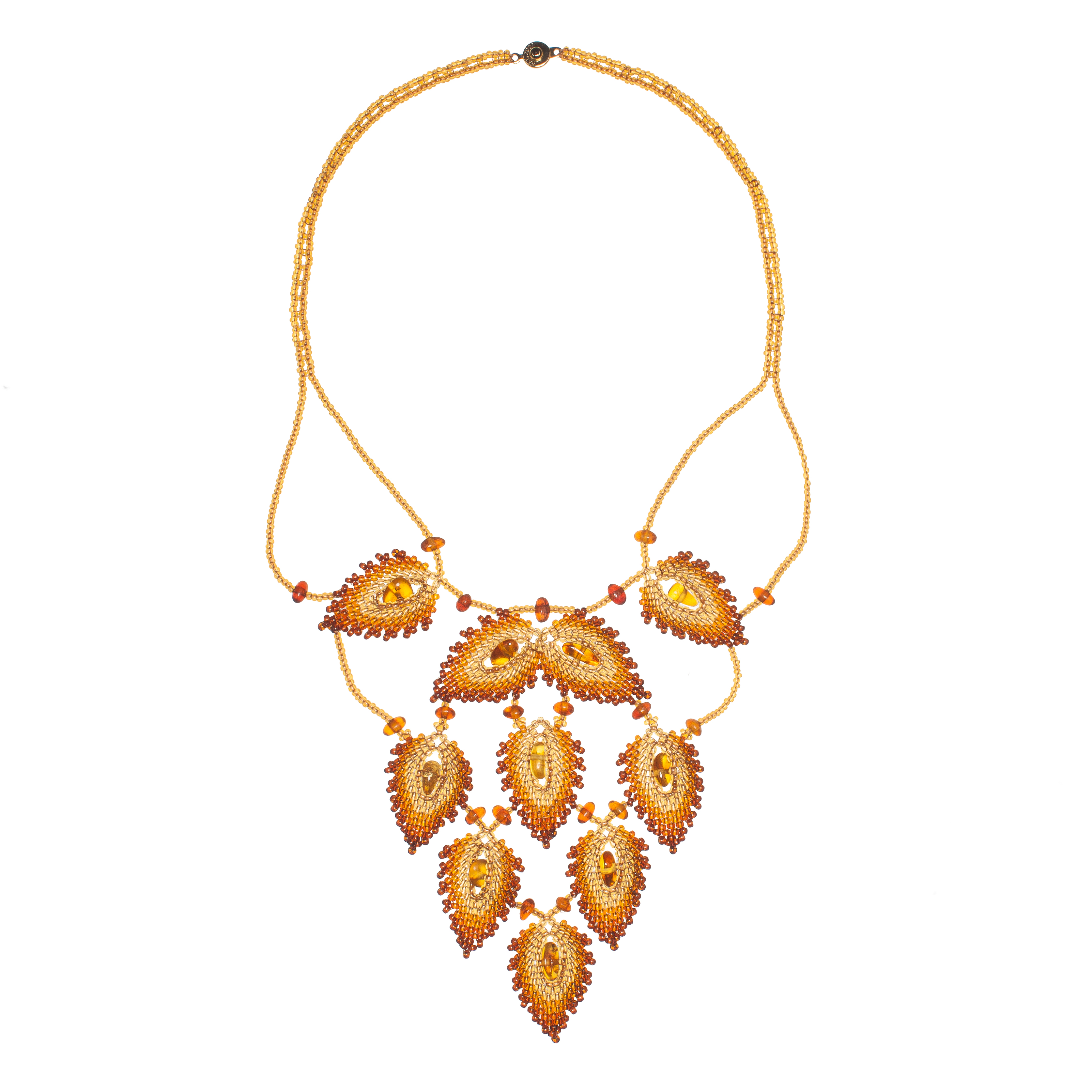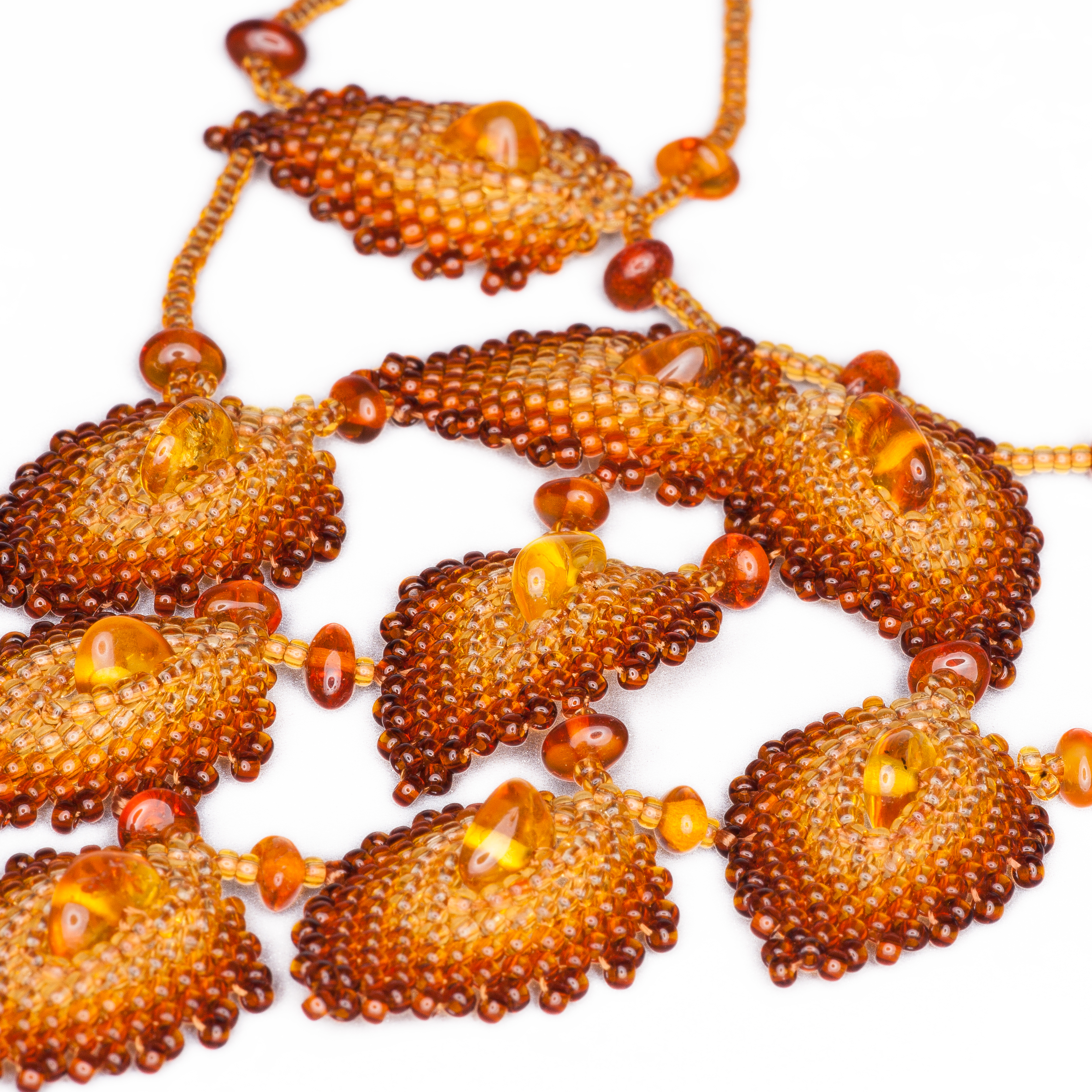 Комплект из янтаря и бисера: колье, браслет, серьги
