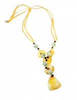 Колье. Состав: янтарь, нефрит, бисер. Длина колье – 55 см. Под заказ длина может быть любой. В случае отсутствия товара на складе срок изготовления и поставки от 3 недель.