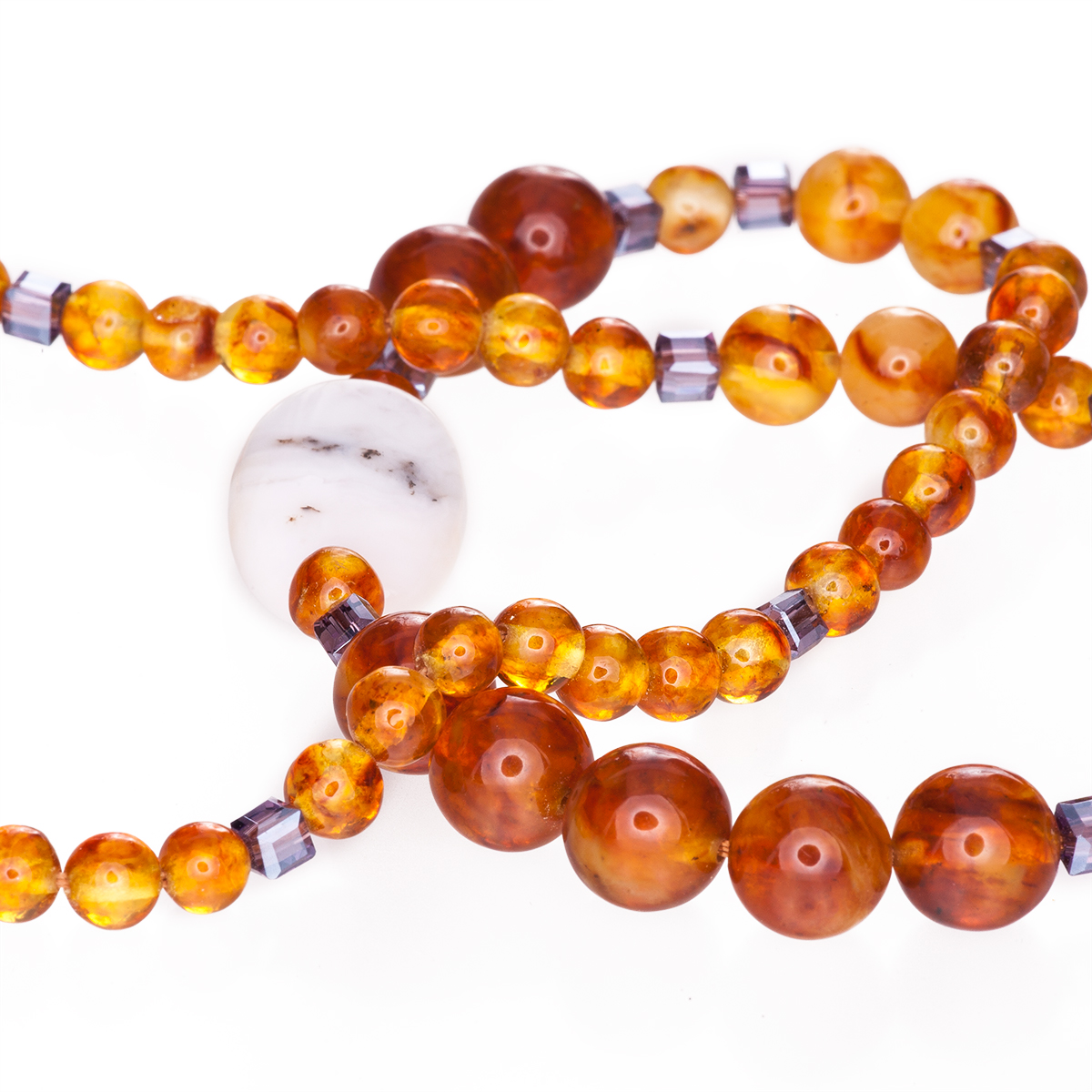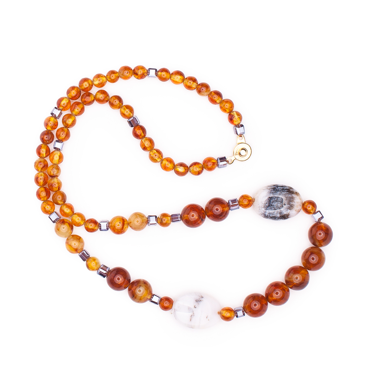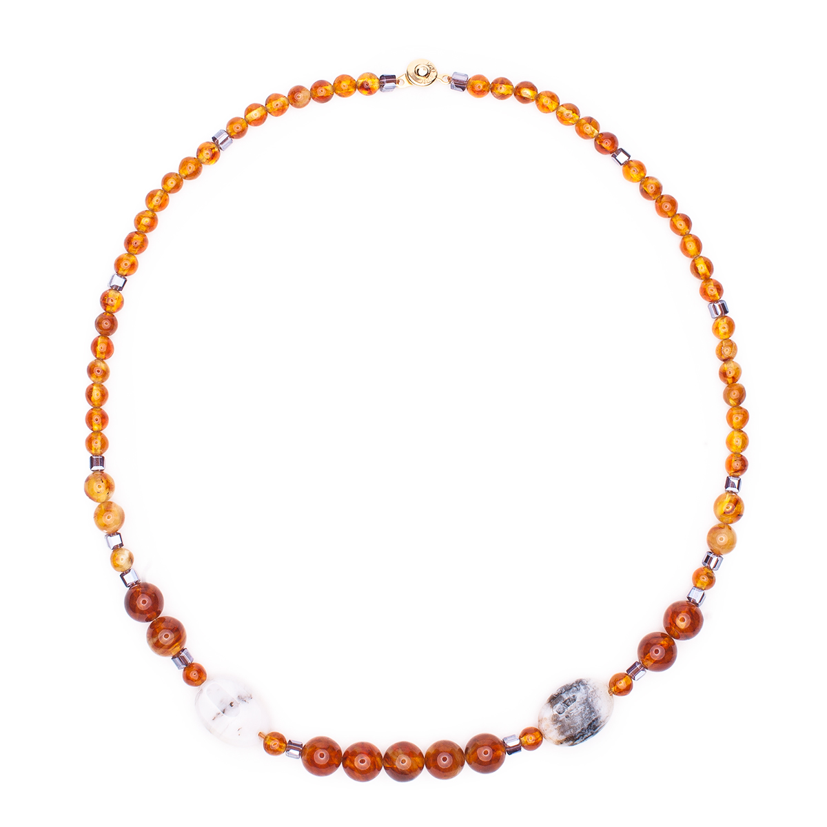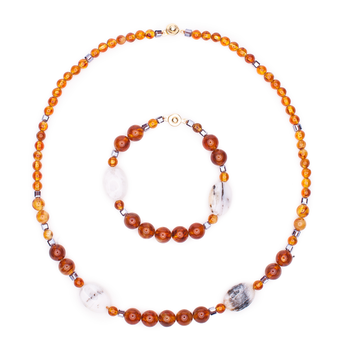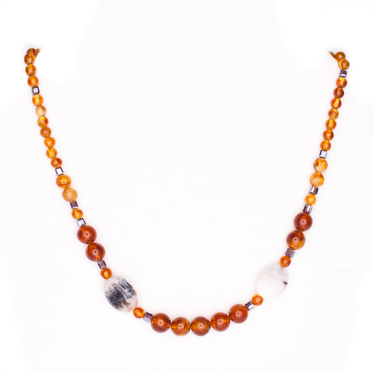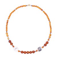 Колье из балтийского янтаря и розового опала