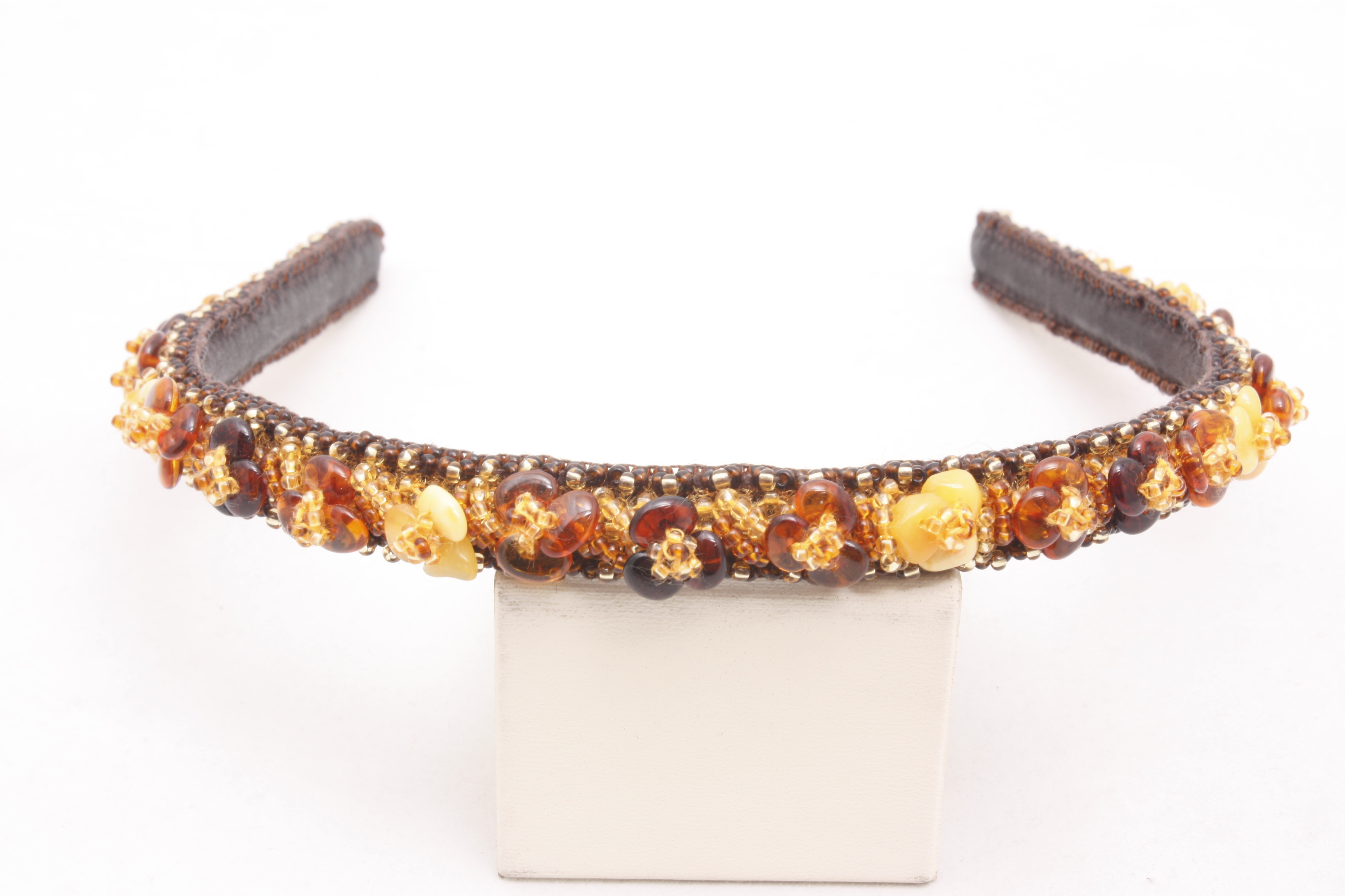 Ободок для волос из бисера, балтийского янтаря и натуральной кожи. Состав: янтарь, бисер, натуральная кожа. Оттенок изделия может не совпадать с оттенком на фото. В случае отсутствия товара на складе срок изготовления - от 3 недель.