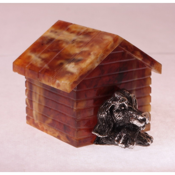 Сувенир "пес в будке" из янтаря. Состав: янтарь, серебро 875 пробы. Размеры: 6*6*6 см. В случае отсутствия товара на складе, срок изготовления составляет от 3 недель.
