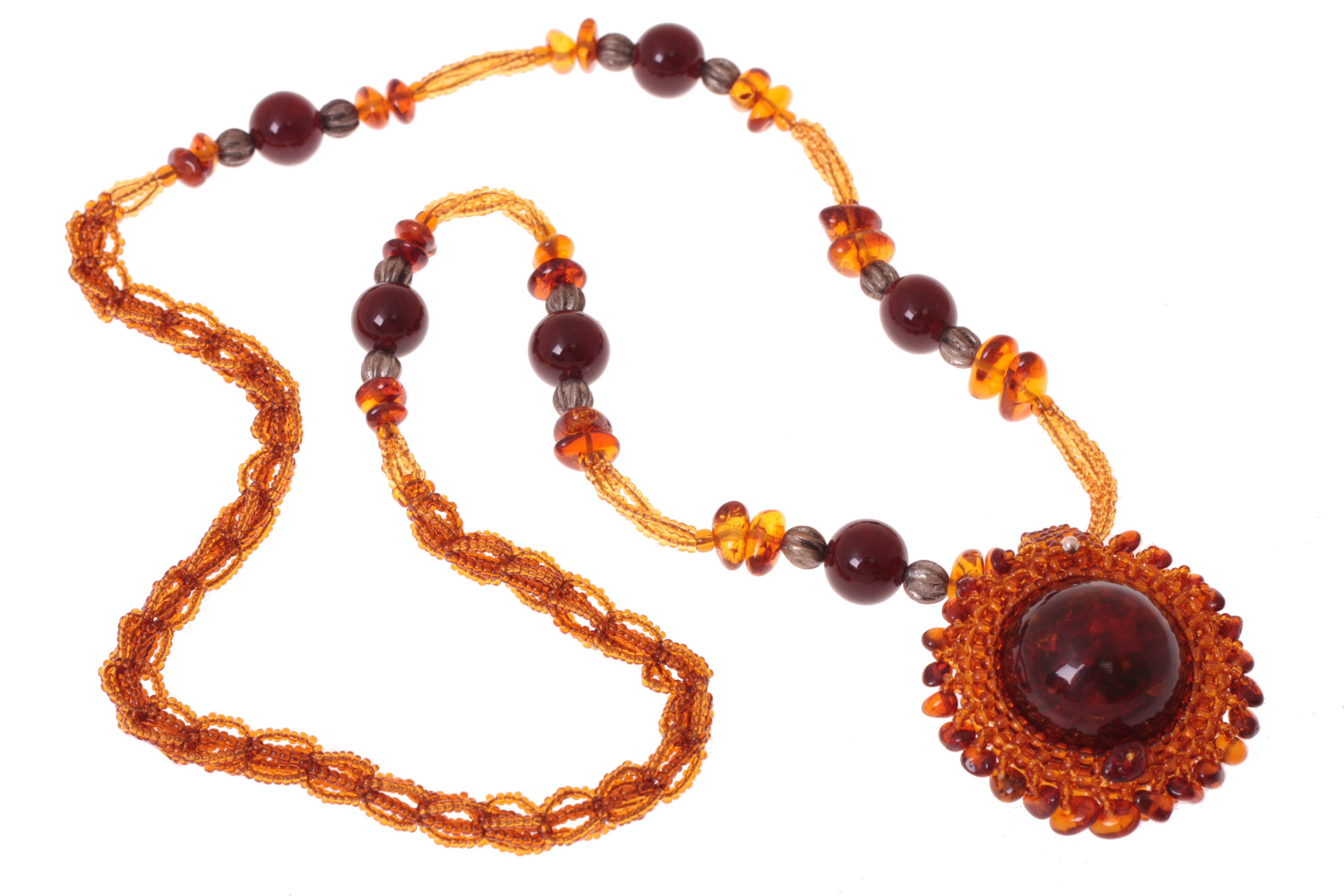 Кулон из балтийского янтаря и бисера