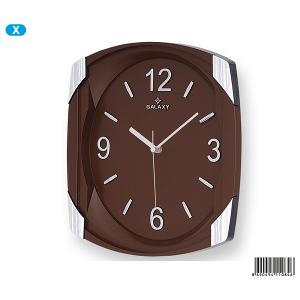 Настенные часы galaxy 108 x. Настенные часы GALAXY 108 X Настенные часы GALAXY 108 X коричневого цвета, имеют надежный бесшумный кварцевый механизм, работающий от батарейки типа АА (пальчиковые). Эта модель идеально подойдет для дома в гостиную комнату разных стилей, включая восточный и под старину. Временные рамки обозначены арабскими цифрами. Стрелки под стеклом. Характеристики часов GALAXY 108 X Производство: Турция Гарантия: 1 год Механизм: кварцевый Материал: качественный ударопрочный полистирол, минеральное стекло Цвет: серый Размер: 29х31,5 см Стрелки под стеклом Тип батарейки - АА (пальчиковые). В комплект не входят. Настенные часы марки GALAXY производятся с 1985 года в Турции. Завод является крупнейшим в Европе по производству интерьерных часов. В ассортименте современные и классические часы, а также часы в турецком стиле. Все модели хорошего качества по демократичной цене. Наш интернет-магазин предлагает купить настенные часы GALAXY 108 X с доставкой по России с оплатой курьеру при получении (наложенный платеж), а также в Беларусь и Казахстан по предоплате. Мы являемся официальным представителем часовой фабрики GALAXY в России. Размер, см : 29х31,5 Цвет : коричневый Материал : качественный ударопрочный полистирол, минеральное стекло Механизм : Кварцевый Функции : Бесшумные СКИДКИ : Индивидуальные