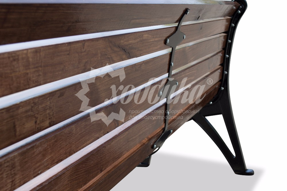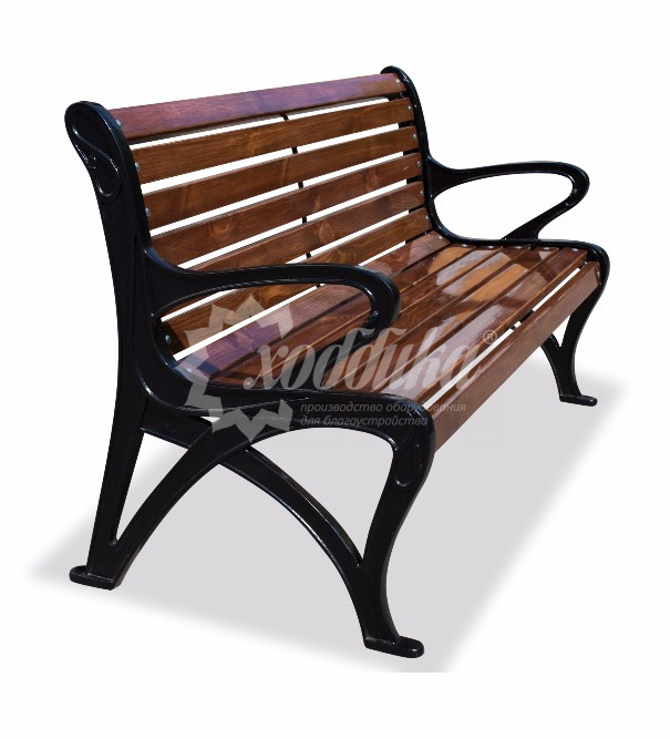 Парковый диван «роса» 1,5 м. Подробные характеристики Скамейка поставляется в разобранном виде! Лиственница лучше чем сосна! В производстве чугунных скамеек мы используем лиственницу. Материалы: Опоры: Чугунное художественное литьё. Покрыты порошковой полимерной краской. Возможность выбора цвета по каталогу RAL. Стандартный цвет (по умолчанию) - черный + бронзовое патинирование. Сиденье и спинка: Брус - ангарская сосна/лиственница (вариант исполнения: композитные материалы) различного сечения. Огнебиозащитные пропитки + тонировочный состав с антисептиком + два слоя яхтного лака с промежуточным шлифованием. Возможность выбора цвета из палитры. Фурнитура: Оцинкованная. Возможность выбора цвета фурнитуры по каталогу RAL. Стандартный цвет (по умолчанию) - серебристый. Возможность использования потайной/скрытой фурнитуры. Технические характеристики: Высота: 850 мм Ширина: 650 мм Длина: 710 - 2110 мм Высота сиденья: 420 мм Ширина сиденья: 430 мм Длина посадочного места: 600 - 2000 мм Вес версии 0.6 м: 73.49 кг Вес версии 1.2 м: 80.52 кг Вес версии 1.5 м: 83.65 кг Вес версии 1.8 м: 86.77 кг Вес версии 2.0 м (2 опоры): 88.55 кг О модели Парковый диван «Роса» создавался специально для установки в парках: изящный внешний вид делает его привлекательным местом для отдыха прохожих, а использование чугуна в производстве опор является гарантией антивандальности и долговечности. Варианты цвета на выбор: , махагон, палисандр, тик,