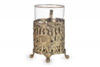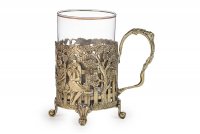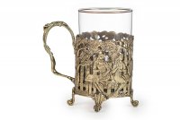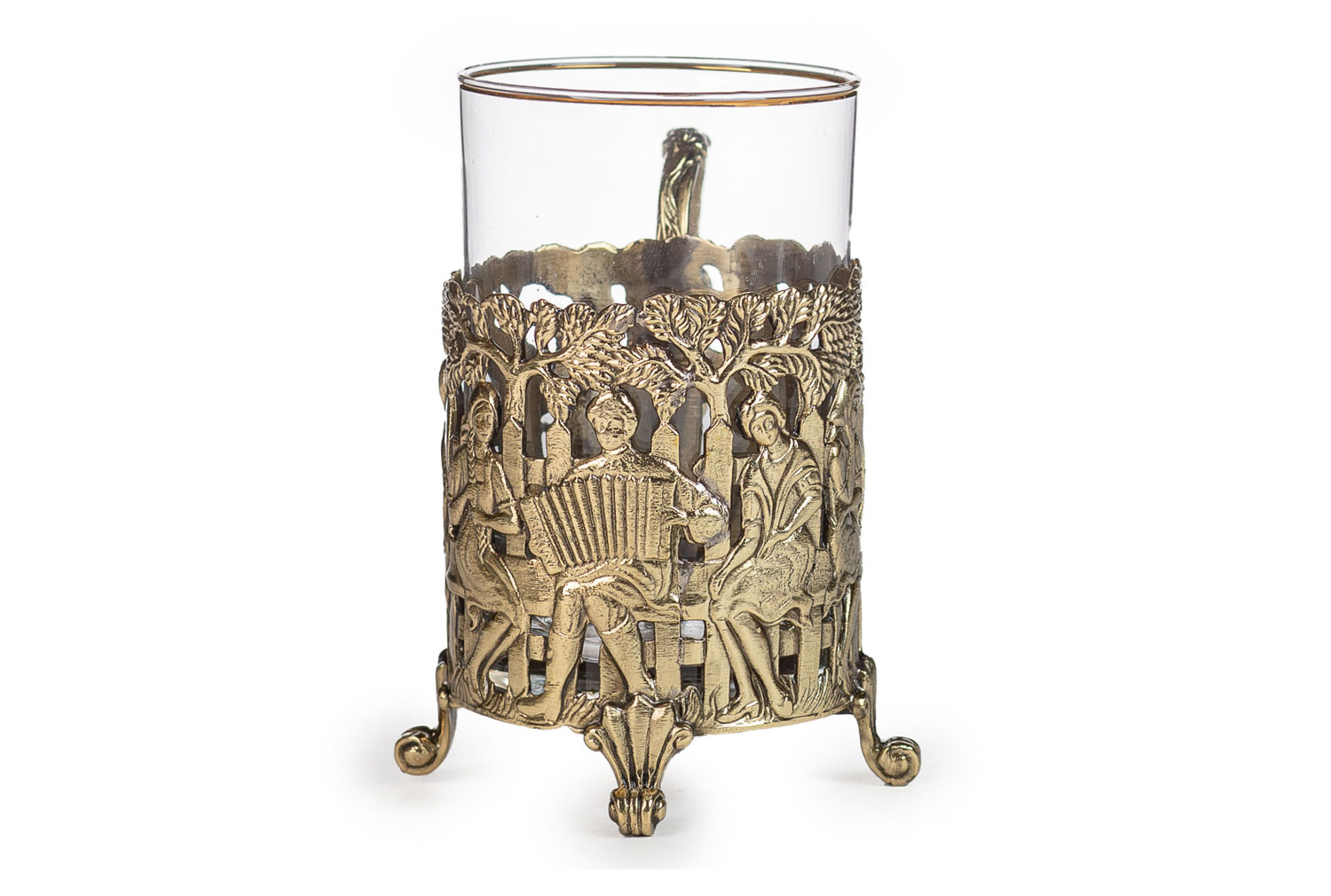 Подстаканник посиделки. Описание: Подстаканник Посиделки - это очень красивый и интересный сюжет на тему: как приятно чай попить, о том, о сем поговорить, да и на гармошке поиграть после выпитого стаканчика с таким подстаканником. Рады будут все такому подарку. Метод изготовления:  художественное литье из латуни (ручная работа) Стакан: Стекло, Производитель: Неман, Страна: Беларусь, Объем: 250 мл  Комплектация: Подстаканник латунь Так же Вы можете приобрести для подстаканника подарочную упаковку и ложечку