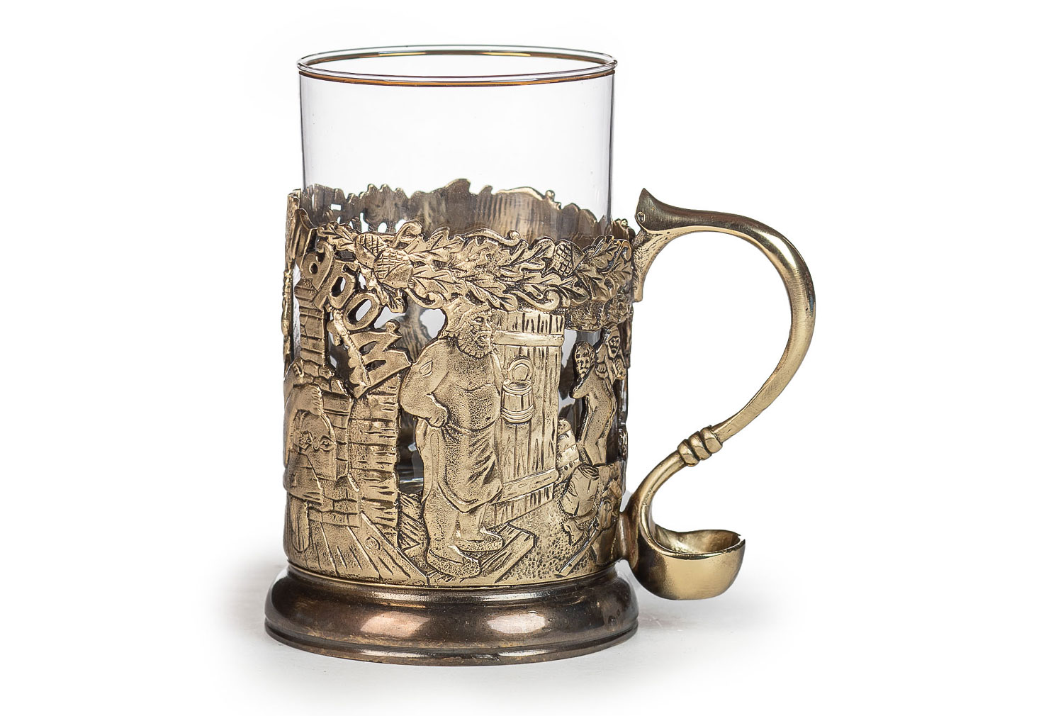 Подстаканник с легким паром 2. Описание: Подстаканник С легким паром 2 сделает чаепитие на много приятнее. А что может быть лучше, чем выпить горячего чаю после жаркой баньки из такого подстаканника Метод изготовления:  художественное литье из латуни (ручная работа) Стакан: Стекло, Производитель: Неман, Страна: Беларусь, Объем: 250 мл  Комплектация: Подстаканник латунь Так же Вы можете приобрести для подстаканника подарочную упаковку и ложечку