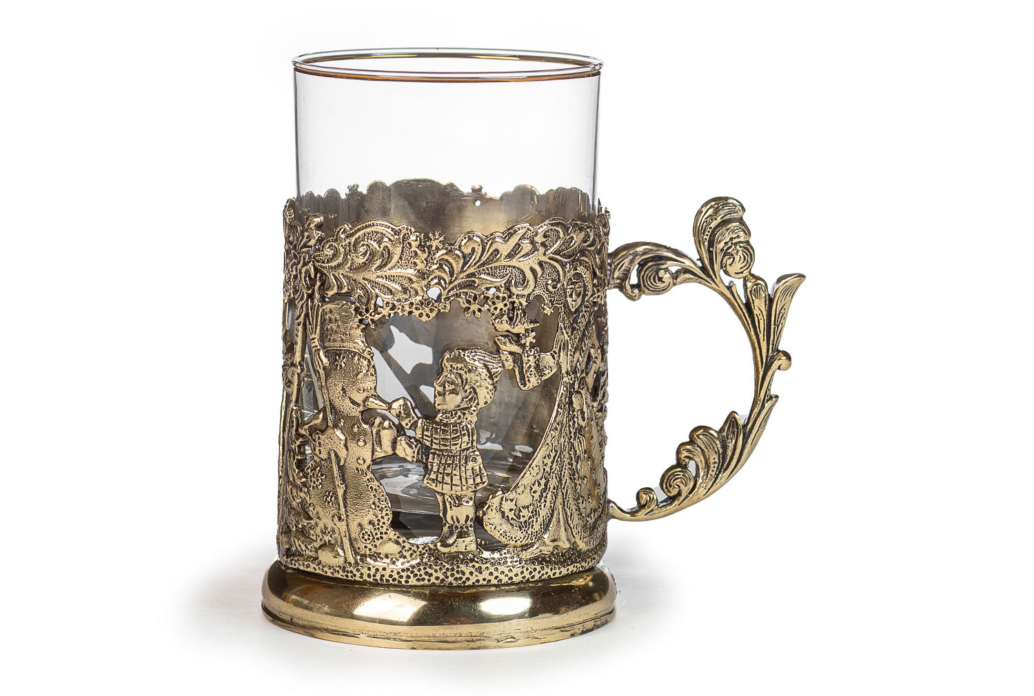 Подстаканник новый год. Описание: Подстаканник Новый год с изображением сцен новогодней тематики станет чудесным подарком на Новый год. Замысловатые узоры, выполненные в технике художетвенного литья напоминают морозные зимние вензеля на стекле. Снеговик и Дед Мороз перенесут Вас в детские воспоминания. Метод изготовления:  художественное литье из латуни (ручная работа) Стакан: Стекло, Производитель: Неман, Страна: Беларусь, Объем: 250 мл  Комплектация: Подстаканник латунь Так же Вы можете приобрести для подстаканника подарочную упаковку и ложечку