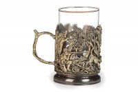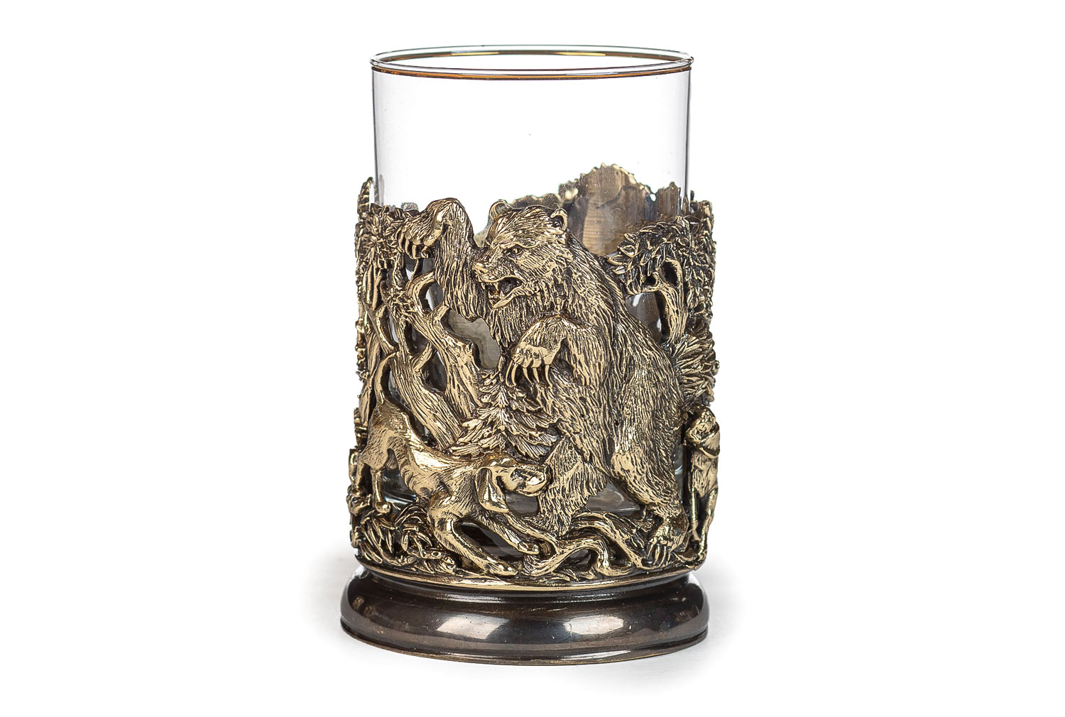 Подстаканник охота на медведя. Описание: Подстаканник Охота на медведя - это необычайно красивое литье из латуни, выполненное нашими мастерами-граверами. Охотник с винтовкой, медведь, охотничьи собаки, лес и ручка подстаканника, выполненная в форме плотной ветви дерева - все эти элементы передают именно ту атмосферу охоты, за которой и ходят настоящие охотники. Если вы хотите окунуться в воспоминания ваших походов на охоту - то данный подстаканник непременно Вам подойдет. Метод изготовления:  художественное литье из латуни (ручная работа) Стакан: Стекло, Производитель: Неман, Страна: Беларусь, Объем: 250 мл  Комплектация: Подстаканник латунь Так же Вы можете приобрести для подстаканника подарочную упаковку и ложечку