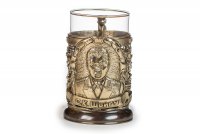 Подстаканник шойгу. Описание: Ни витиеватых кружевных узоров, неуместных для военной техники, изображенной строгими, четкими линиями, как и портрет С.К.Шойгу на золотом фоне подстаканника, ни других легковесных деталей здесь нет. Усиленная витая ручка, лаконичная линия верха подстаканника - всё это придает особую красоту и торжественность такому оригинальному подарку. Метод изготовления:  художественное литье из латуни (ручная работа) Стакан: Стекло, Производитель: Неман, Страна: Беларусь, Объем: 250 мл  Комплектация:  Подстаканник латунь Так же Вы можете приобрести для подстаканника подарочную упаковку и ложечку