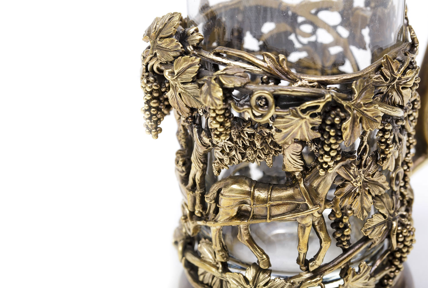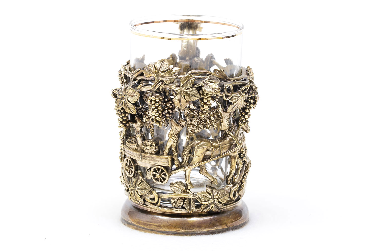 Подстаканник виноград. Описание: Если рассматривать виноград, как символ христианства, то еще в Библии было сказано, что люди – это ветви виноградной лозы. Сегодня, мало кто придерживается этому значению и считают виноград символом плодородия и благословения. Для людей постарше, подарок в виде подстаканника из жаропрочным стаканом с позолотой, с кованным рисунком винограда ручной работы – станет незабываемым презентом.   Метод изготовления:  художественное литье из латуни (ручная работа) Стакан: Стекло, Производитель: Неман, Страна: Беларусь, Объем: 250 мл  Комплектация:  Подстаканник латунь Так же Вы можете приобрести для подстаканника подарочную упаковку и ложечку