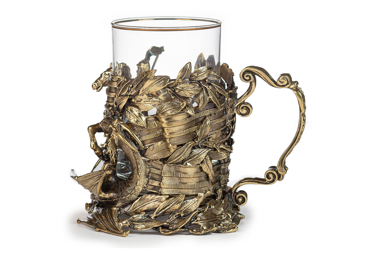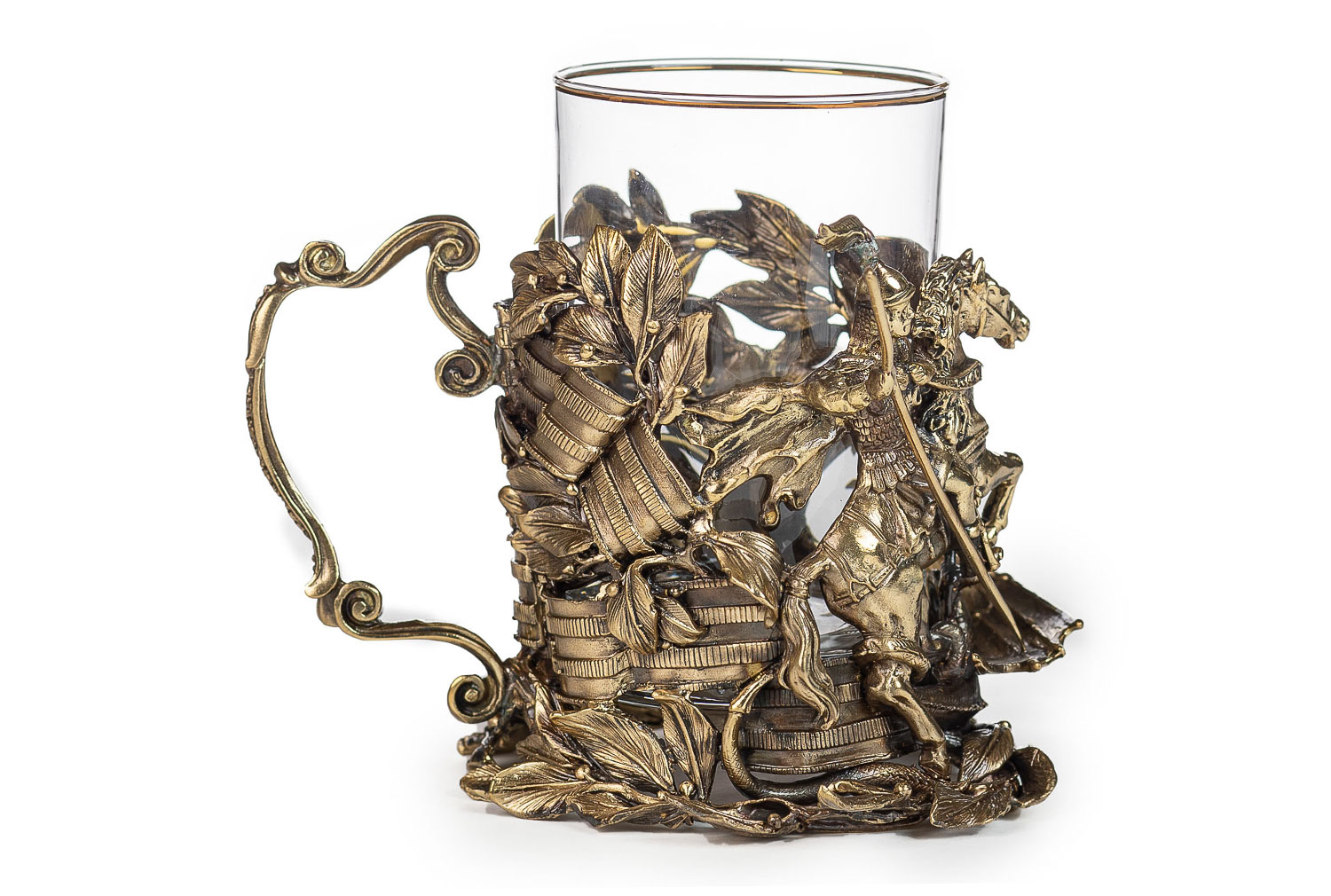 Подстаканник георгий. Описание: Подстаканник «Георгий» можно по достоинству оценить как произведение искусства, описывающее библейскую историю. Выполнен он из латуни в стиле художественного литья ручной работы. Данное эксклюзивное изделие прекрасно подойдет в качестве отличного подарка или презента. Для этого мы предлагаем приобрести стильную подарочную упаковку, а при желании – ложечку. Метод изготовления: художественное литье из латуни (ручная работа) Стакан: Стекло, Производитель: Неман, Страна: Беларусь, Объем: 250 мл Комплектация: Подстаканник латунь Так же Вы можете приобрести для подстаканника подарочную упаковку и ложечку