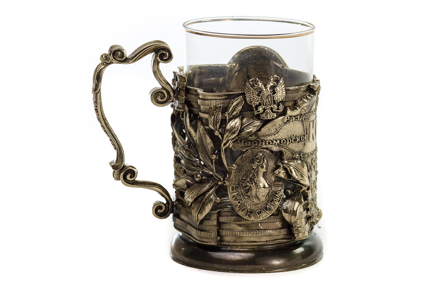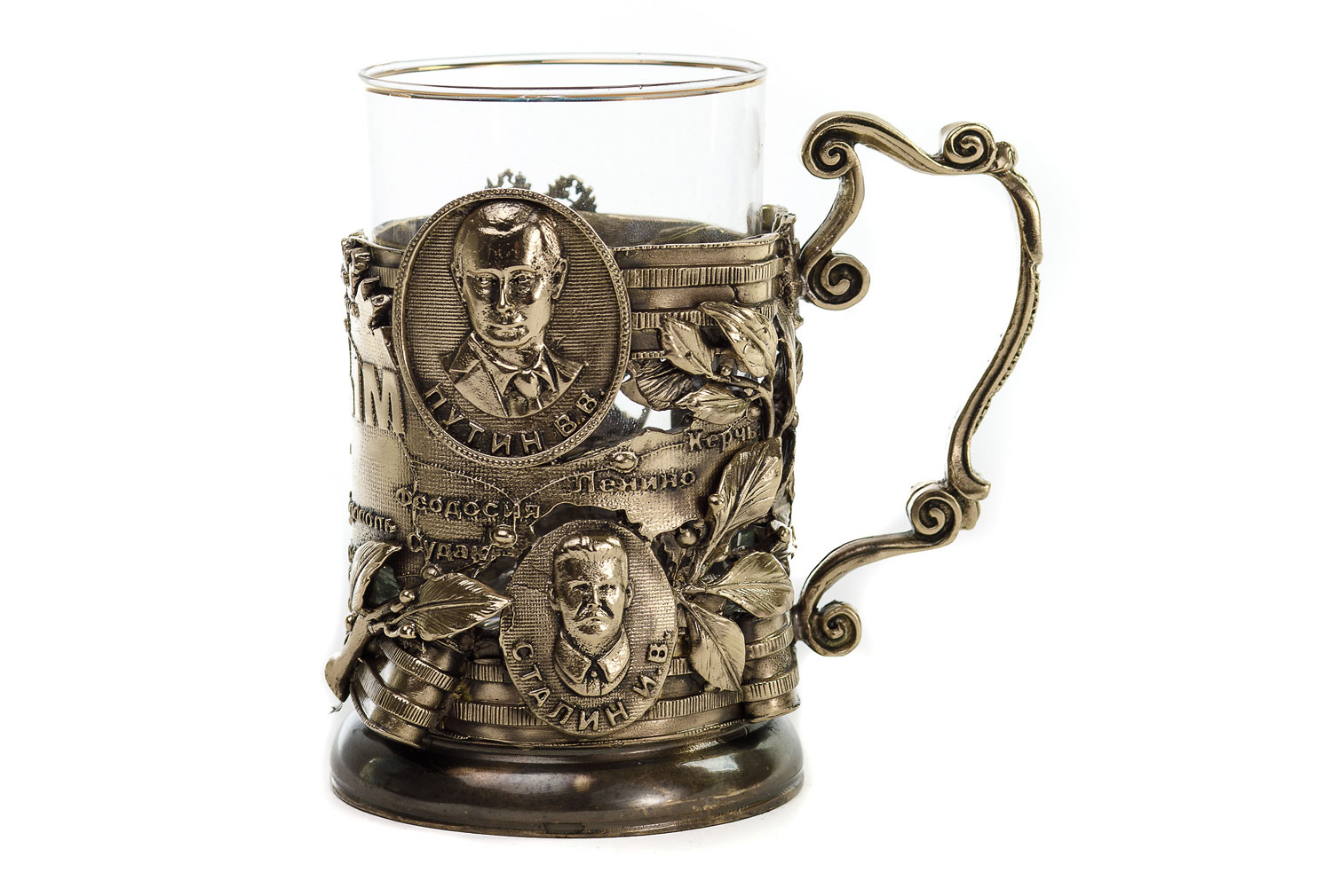 Подстаканник крым наш. Описание: Богатая сюжетная линия, изображенная на подстаканнике «Крым наш», позволяет окунуться в разные временные эпохи. Надеемся, что подстаканник будет интересен не только коллекционерам и любителям истории. Он идет в комплекте со стаканом, у которого на каемку нанесена позолота, что придает особый шик всему изделию. Метод изготовления:  художественное литье из латуни (ручная работа) Стакан: Стекло, Производитель: Неман, Страна: Беларусь, Объем: 250 мл  Комплектация:  Подстаканник латунь Так же Вы можете приобрести для подстаканника подарочную упаковку и ложечку