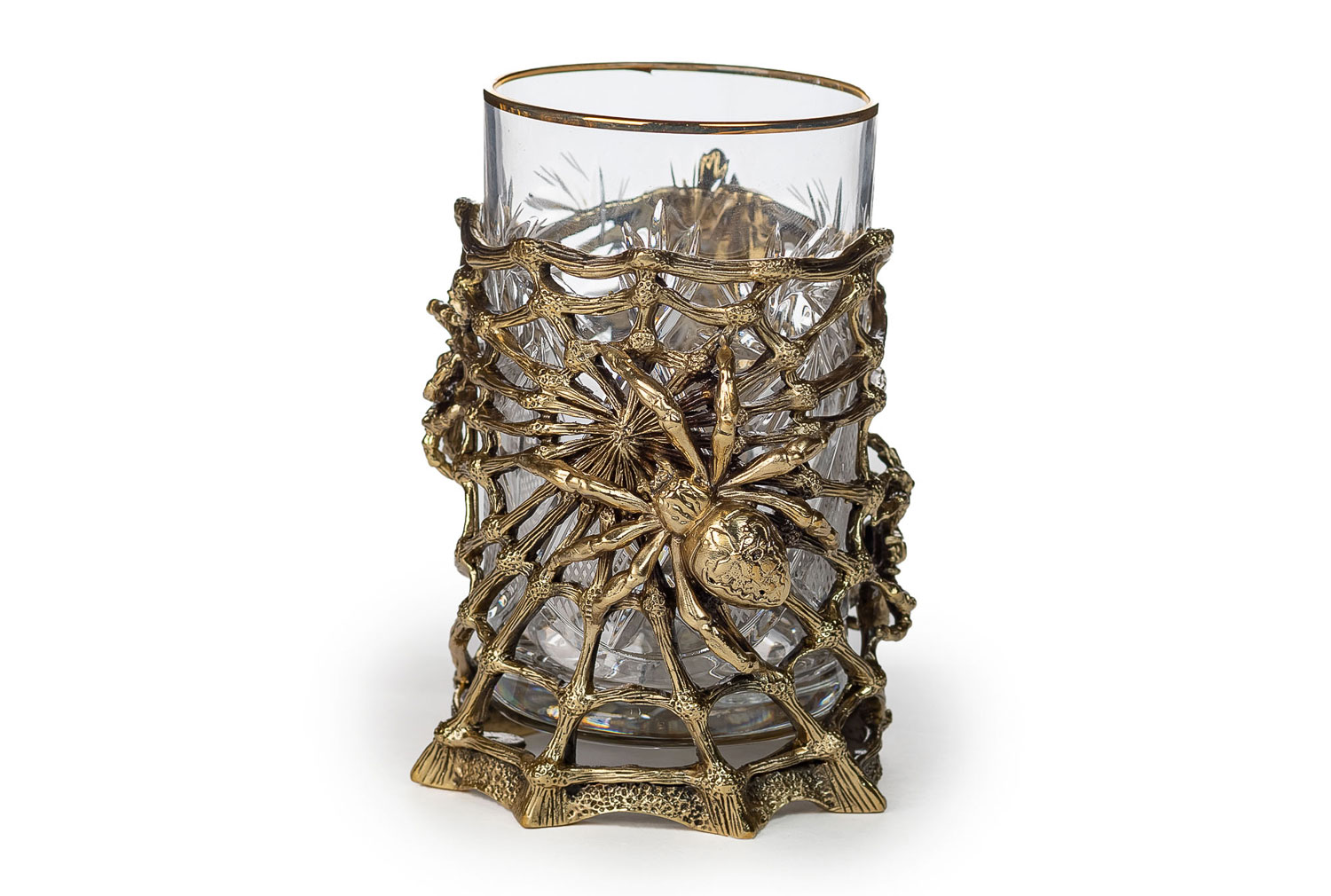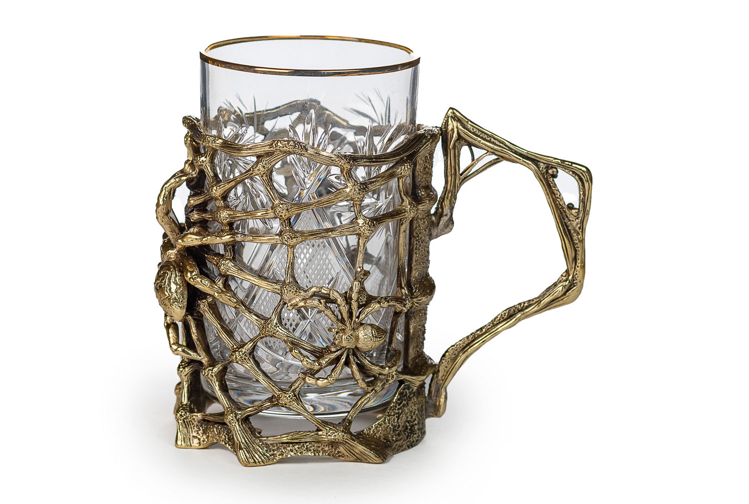 Подстаканник паук. Метод изготовления:  художественное литье из латуни (ручная работа) Стакан:  Хрусталь,  Производитель: Неман,  Страна:  Беларусь,  Объем: 250 мл Комплектация:  Подстаканник латунь Так же Вы можете приобрести для подстаканника подарочную упаковку и ложечку