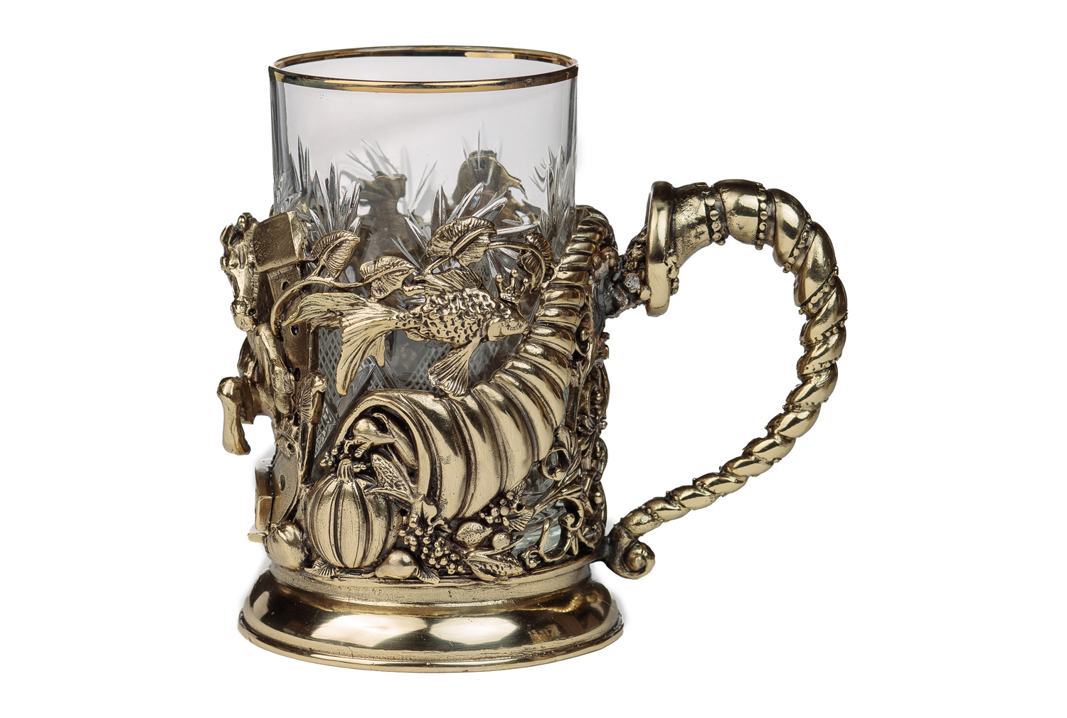 Подстаканник рог изобилия. Метод изготовления: nbsp художественное литье из латуни (ручная работа) Стакан: nbsp Хрусталь, nbsp Производитель: Неман, nbsp Страна: nbsp Беларусь, nbsp Объем: 250 мл Комплектация: Подстаканник латунь Так же Вы можете приобрести для подстаканника подарочную упаковку и ложечку