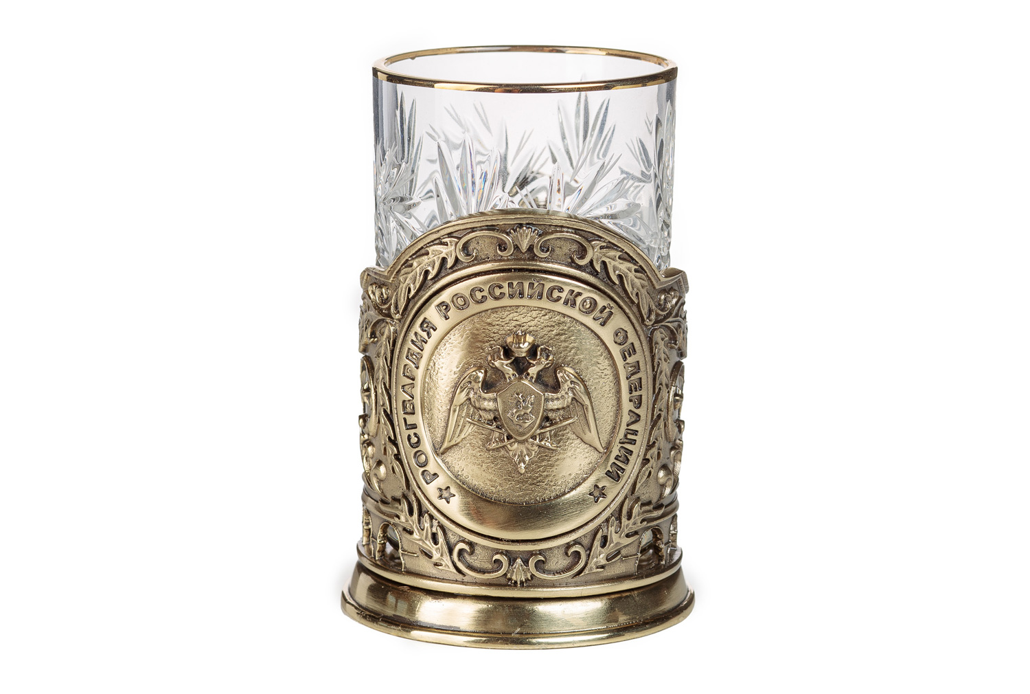 Подстаканник росгвардия. Метод изготовления: nbsp художественное литье из латуни (ручная работа) Стакан: nbsp Хрусталь, nbsp Производитель: Неман, nbsp Страна: nbsp Беларусь, nbsp Объем: 250 мл Комплектация: Подстаканник латунь Так же Вы можете приобрести для подстаканника подарочную упаковку и ложечку