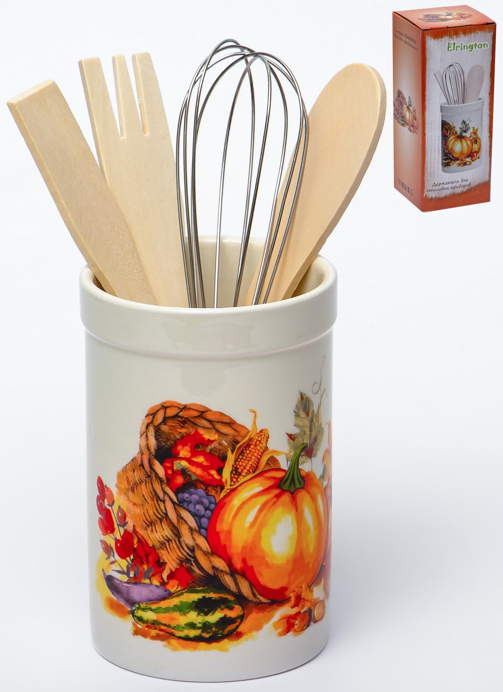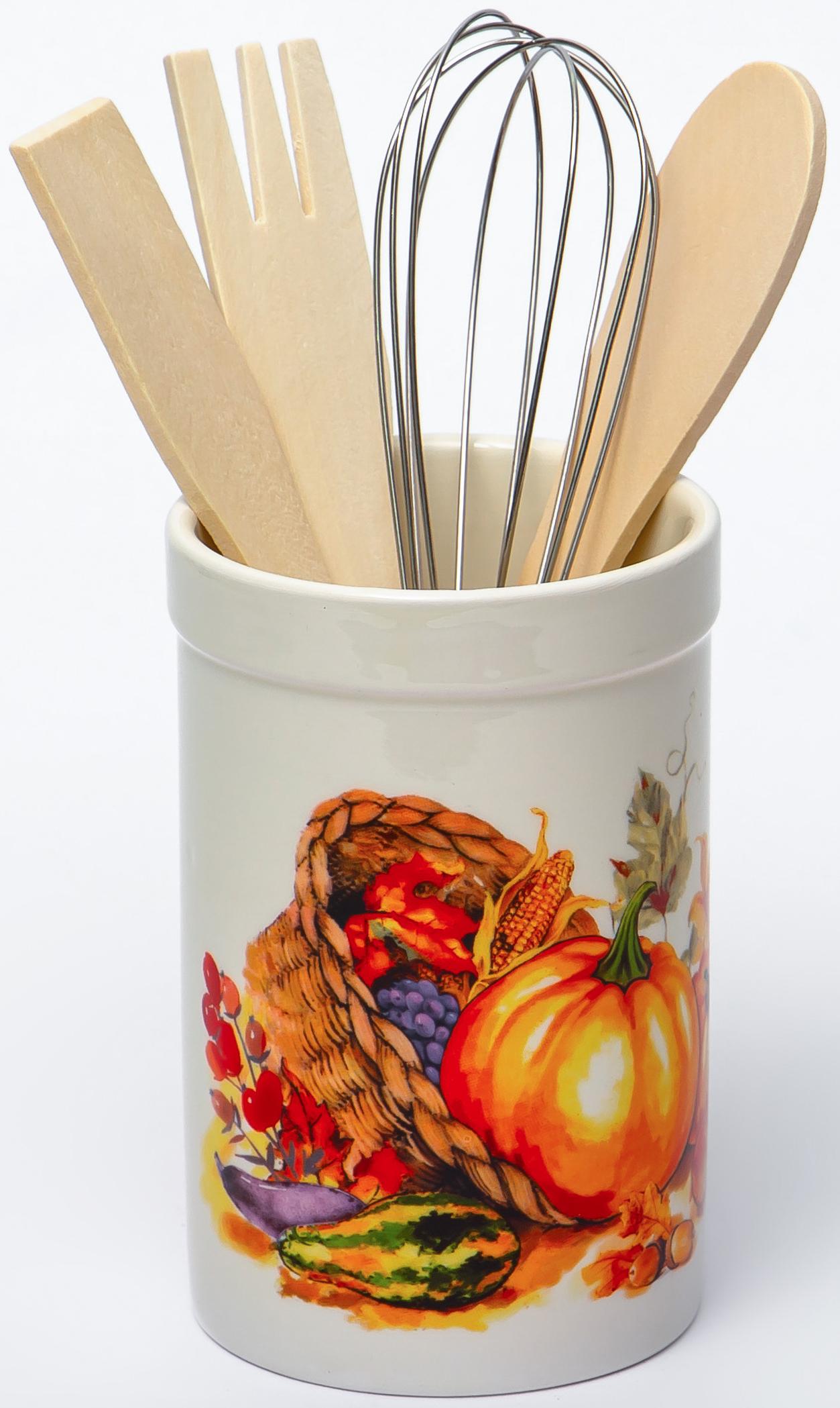 Держатель для столовых приборов 8,5 1 шт Деревянная ложка 20см 1 шт Деревянная вилка 20см 1 шт Деревянная лопатка 20см 1 шт Металлический венчик 20см 1 шт