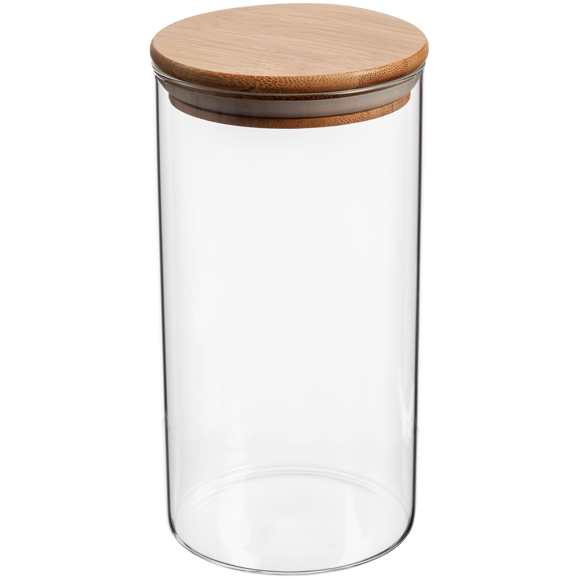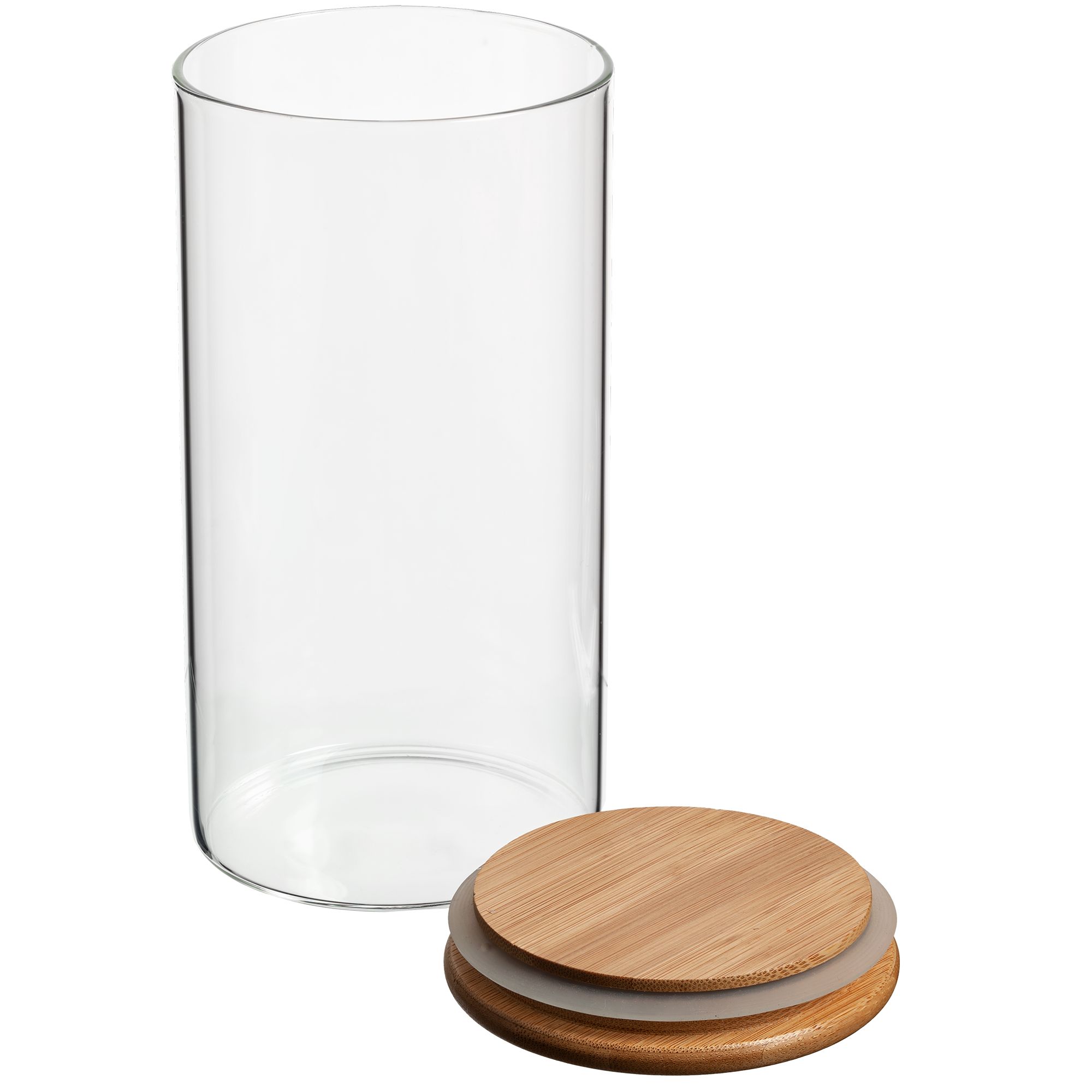 Емкость для хранения fill me, большая. Размеры диаметр 9,5 см, высота 18,5 см; коробка: 10,7х10,7х20,5 см Материал боросиликатное стекло; бамбук Вес (1 шт.) 333 г Транспортная упаковка 33,0x23,0x23,0 см Вес 2,00 кг Объем упаковки 0,017 м? Количество в упаковке 6 шт. Виды нанесения A2-Тампопечать (1 цвет) H-деколь LC1-Лазерная гравировка LR-Круговая гравировка Емкость 1,2 л. Поставляется в индивидуальной транспортной коробке.  развернуть описание ▼