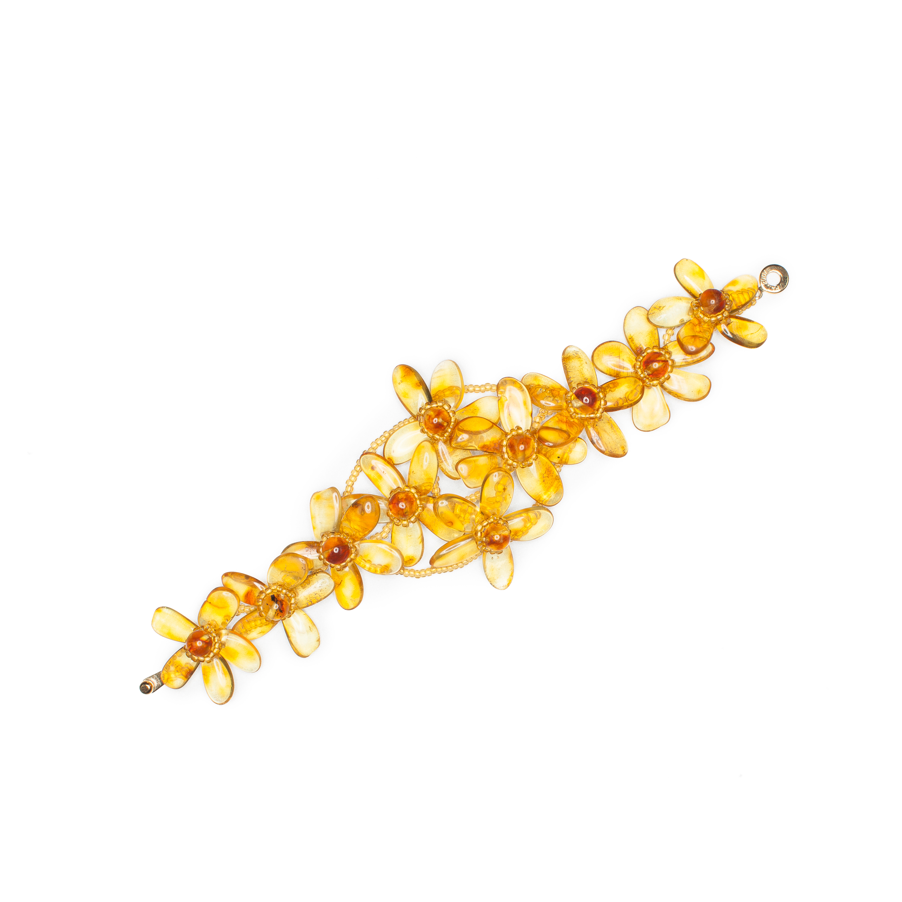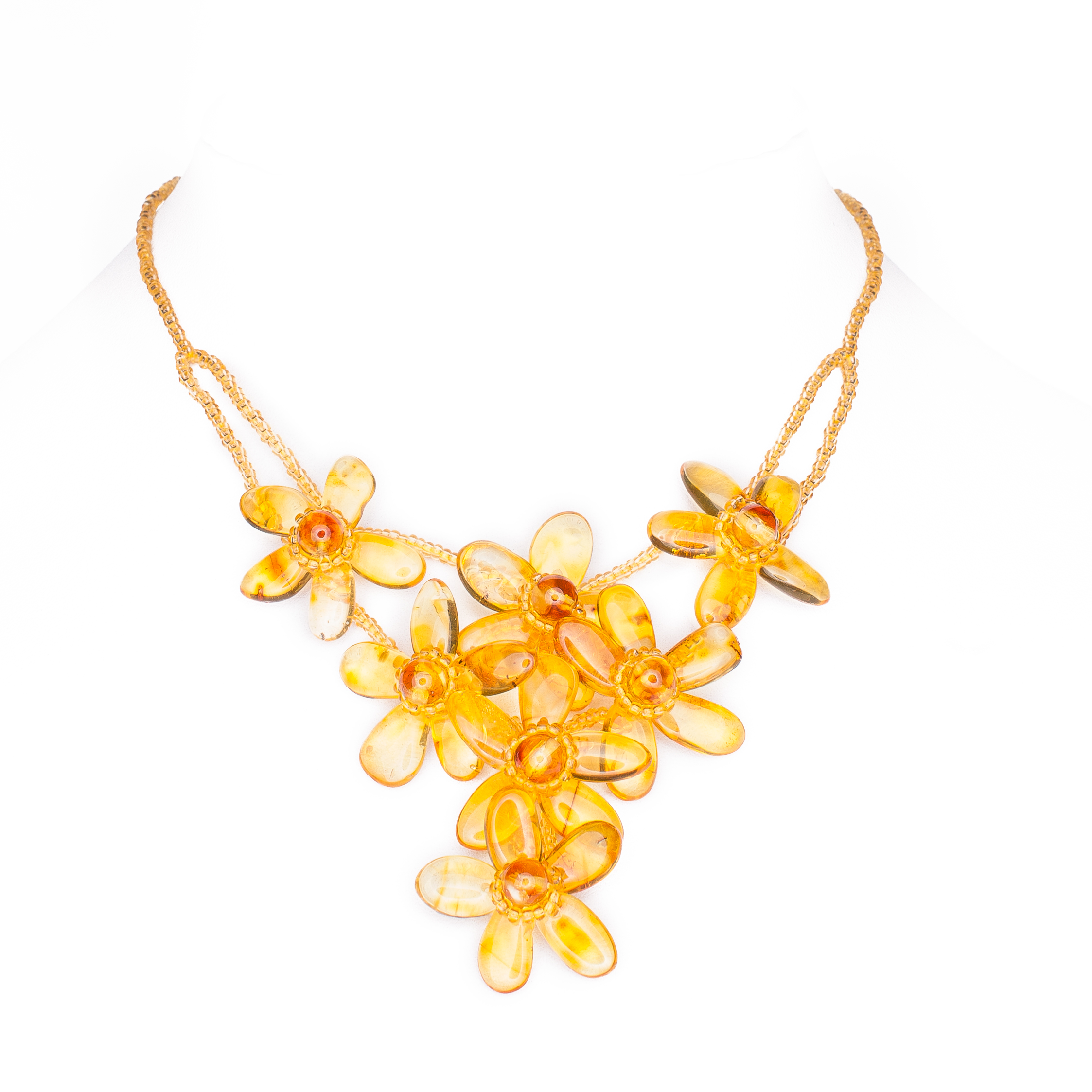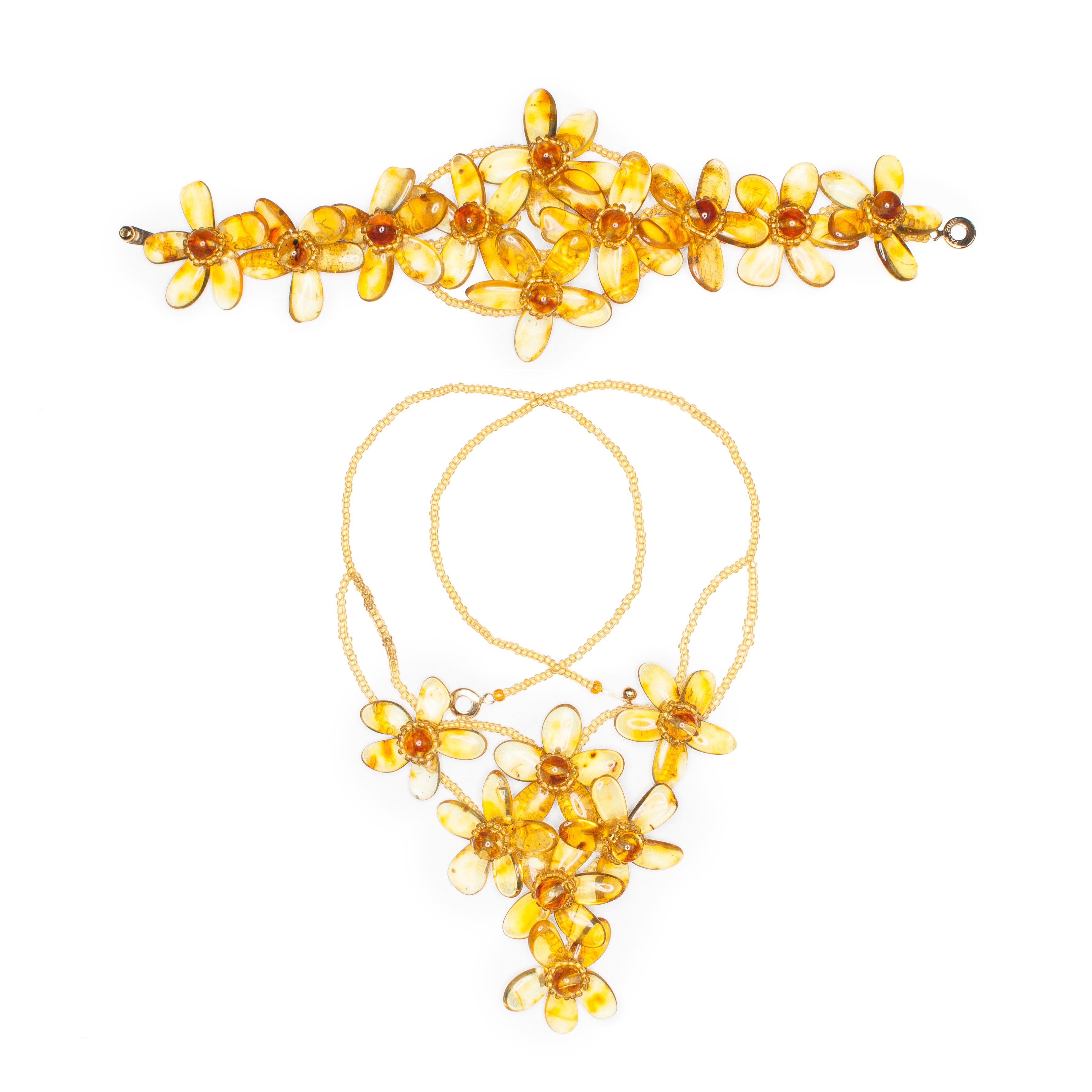 Комплект с цветами из балтийского янтаря: колье, браслет.