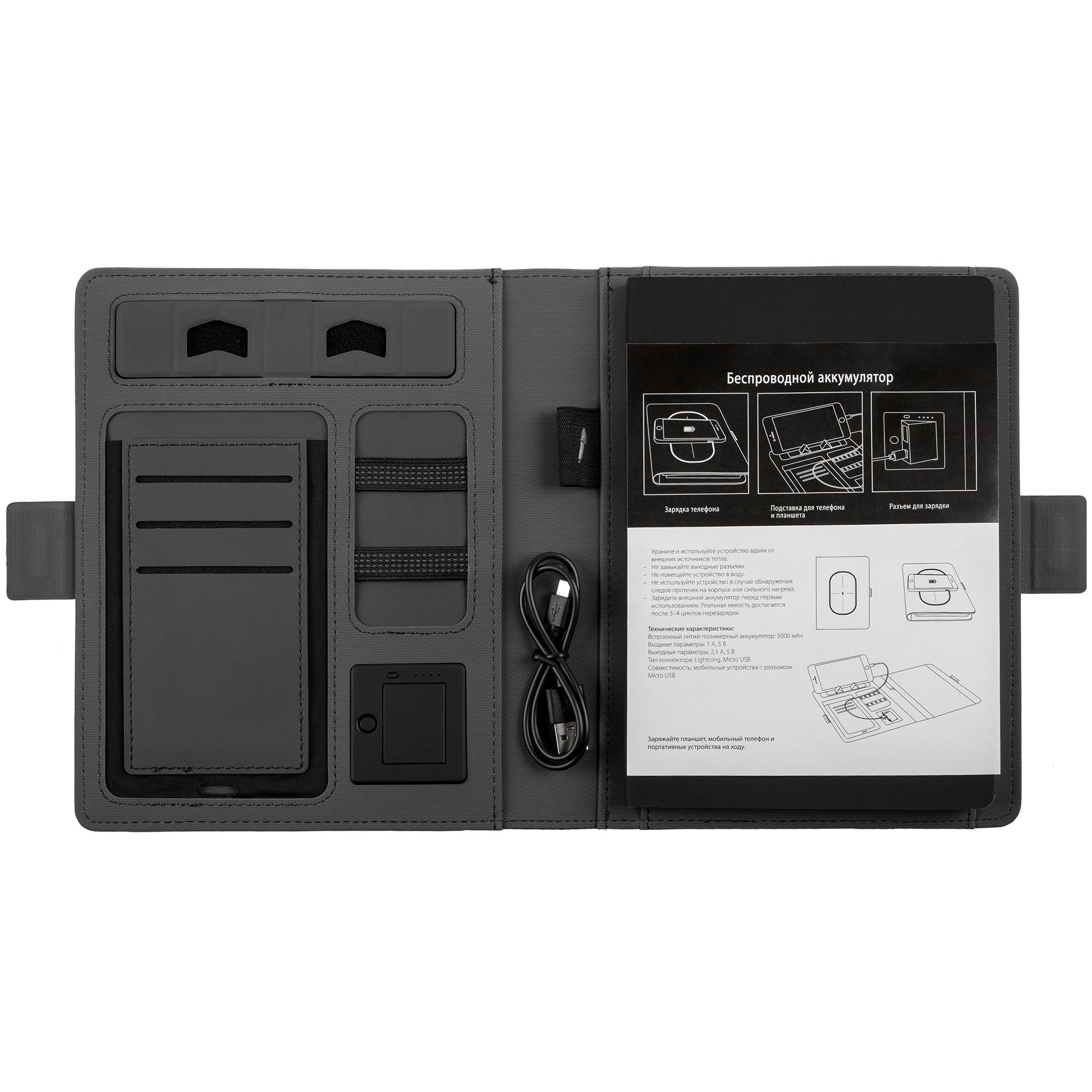 Органайзер с блокнотом и аккумулятором с беспроводной зарядкой.