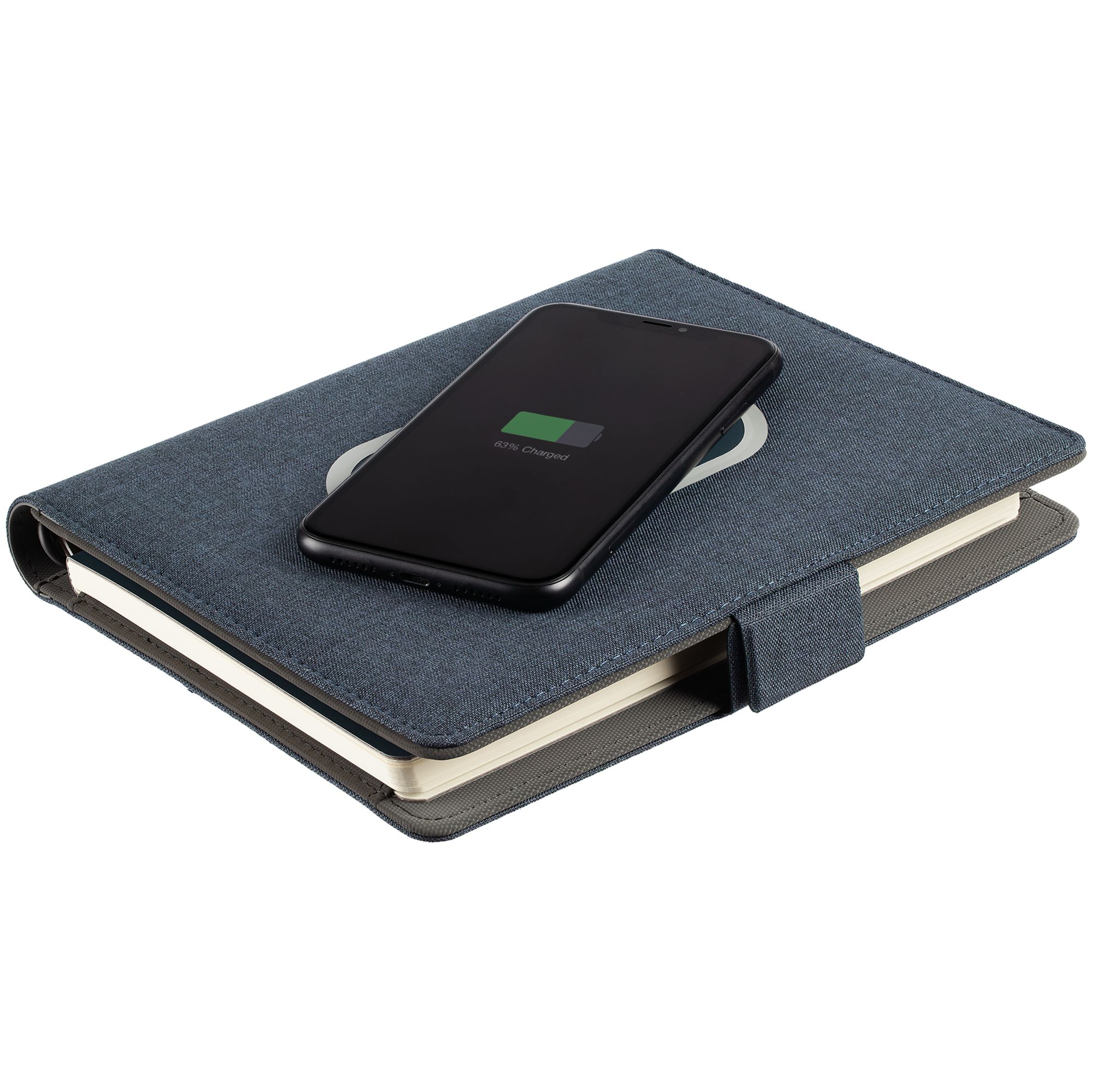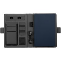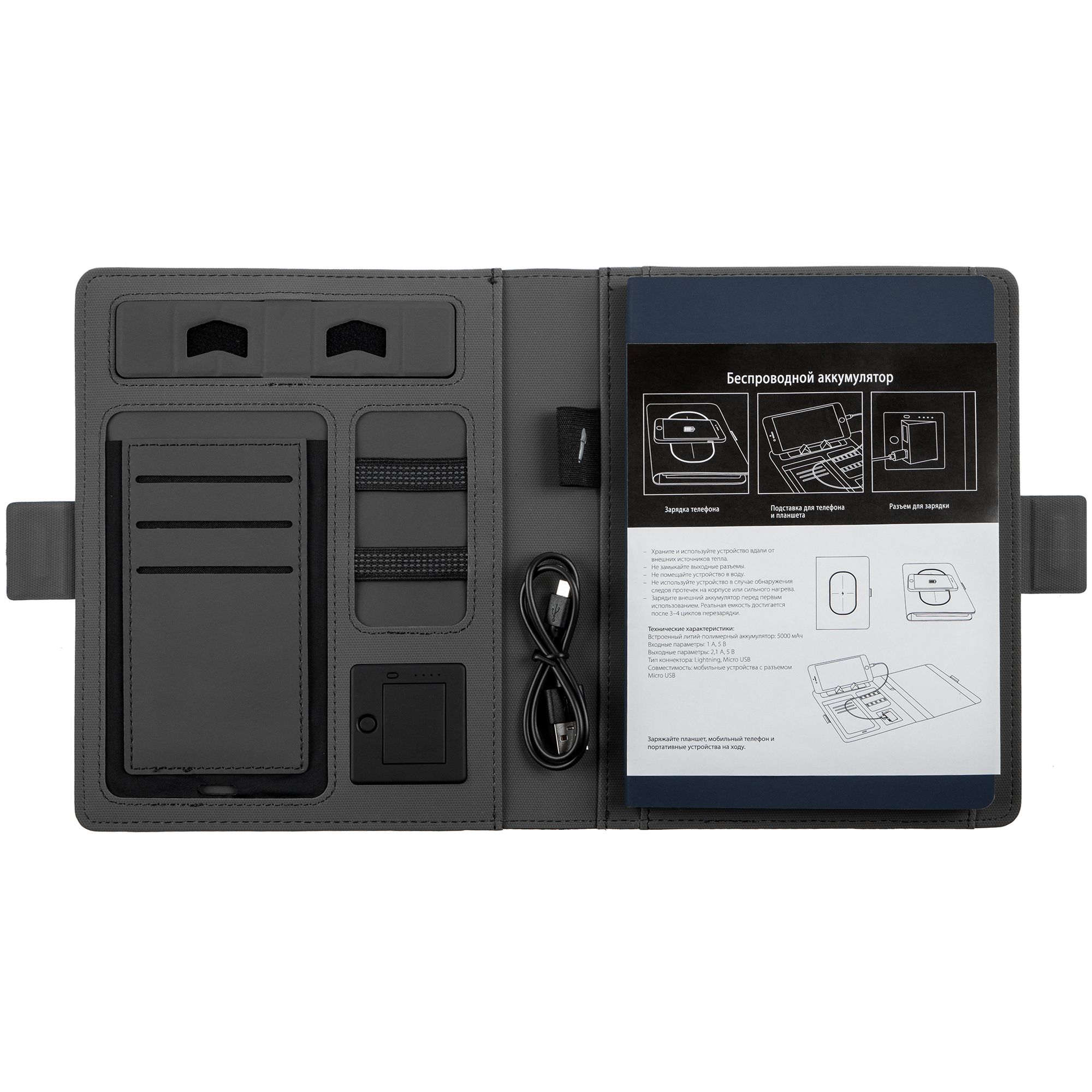 Цена. Размеры 22,5х18х3 см; блокнот: 14х21 см Материал полиуретан; ткань Вес (1 шт.) 592 г Транспортная упаковка 36,0x41,0x27,0 см Вес 11,84 кг Объем упаковки 0,040 м Количество в упаковке 20 шт. Виды нанесения D-Шелкография LC4-Лазерная гравировка SH-Шелкография (1 цвет) T1-Тиснение бесцветное T2-Тиснение фольгой (1 цвет) UV-УФ-печать Органайзер с блокнотом и аккумулятором с беспроводной зарядкой. Съемный блокнот формата А5, 64 листа в линейку, тонированная бумага. Встроенный аккумулятор емкостью 5000 мАч (входные параметры: 1 А, 5 В; выходные параметры: 2,1 А, 5 В). Поддерживает функцию беспроводной зарядки (5 Вт) Карман для телефона (до 6) 3 кармана для карточек Подставка под телефон Петля для ручки Крепления-резинки для кабеля Обложка из ткани и магнитная застежка В комплекте кабель для зарядки аккумулятора с разъемом Micro USB/Lightning.