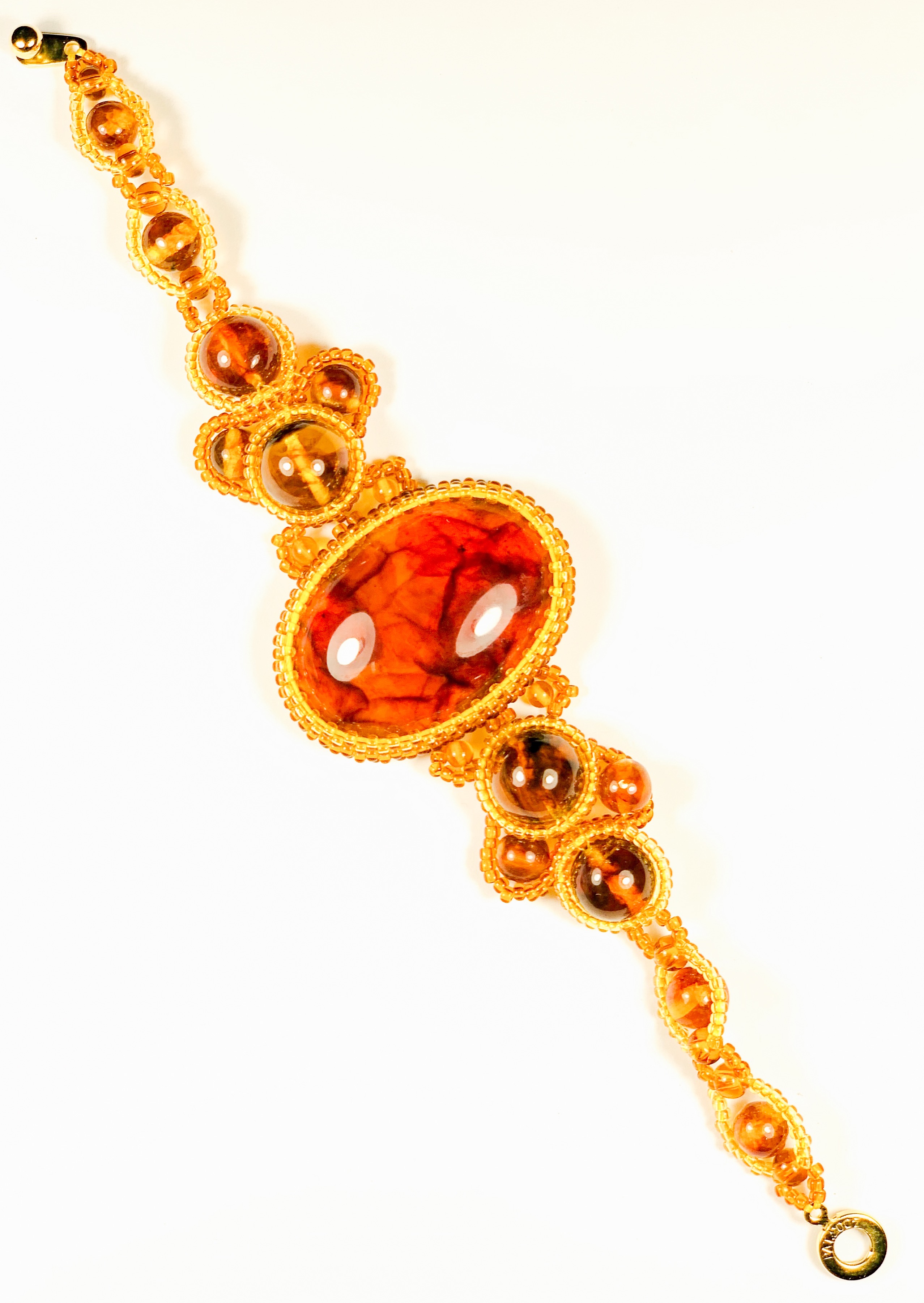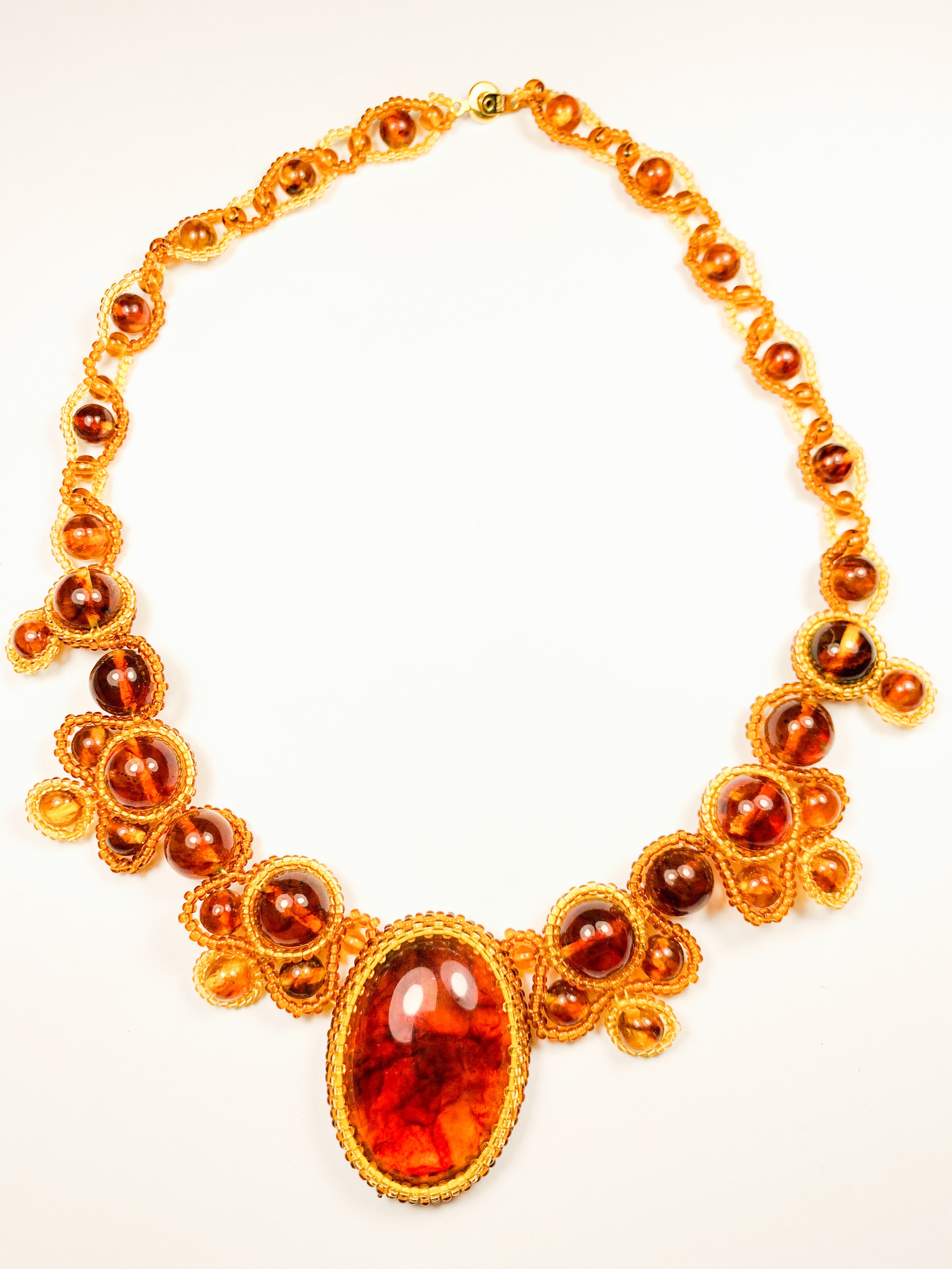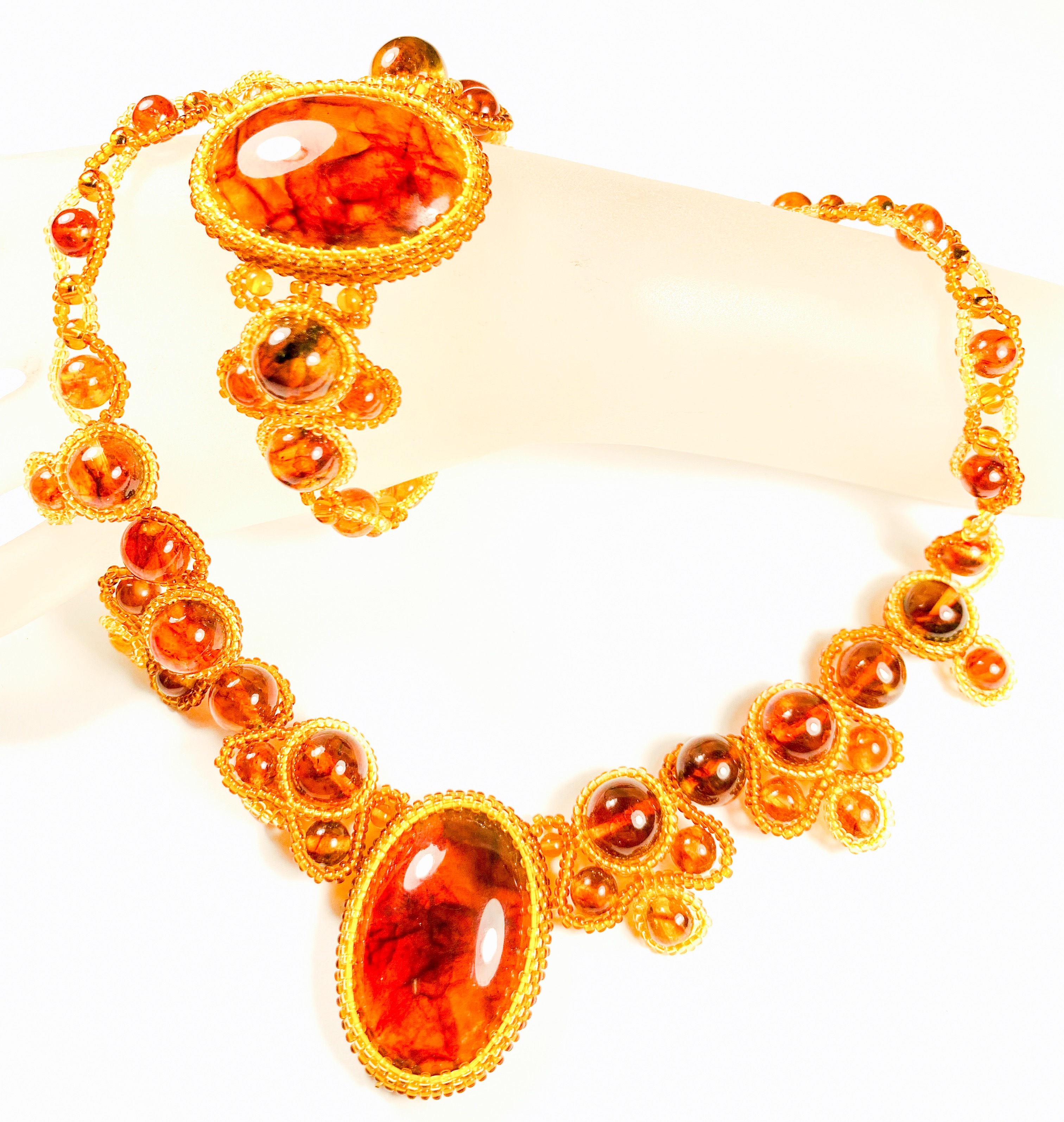 Роскошный комплект: колье, браслет из бисера и балтийского янтаря Роскошный комплект: колье, браслет из бисера и балтийского янтаря Роскошный комплект: колье, браслет из бисера и балтийского янтаря
