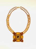 Красивое колье из бисера, янтаря, вулканического камня туф, сердолика и са ШК-45/ 3 Шкатулка Холуй Жар-птица Орлова 17x8