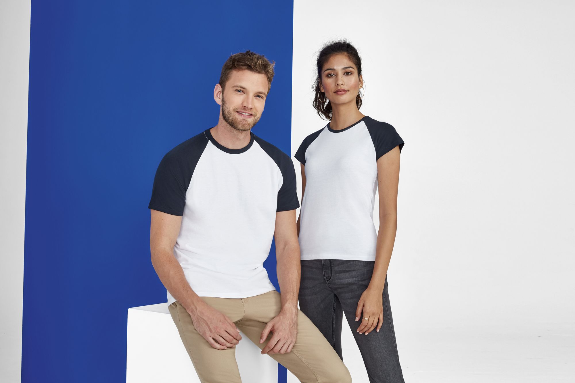 Футболка мужская двухцветная Funky 150, белая с ярко-синим