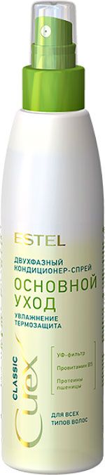 Кондиционер-спрей cu200/2f двухфазный для всех типов волос увлажнение cure. Бренд: Estel Материал (состав): Активные компоненты: силоксаны, провитамин В5 Назначение: Для ухода за волосами Объём: 200 мл Страна-изготовитель: Россия