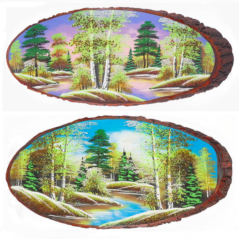 Панно на срезе дерева весна горизонтальное 95-100 см