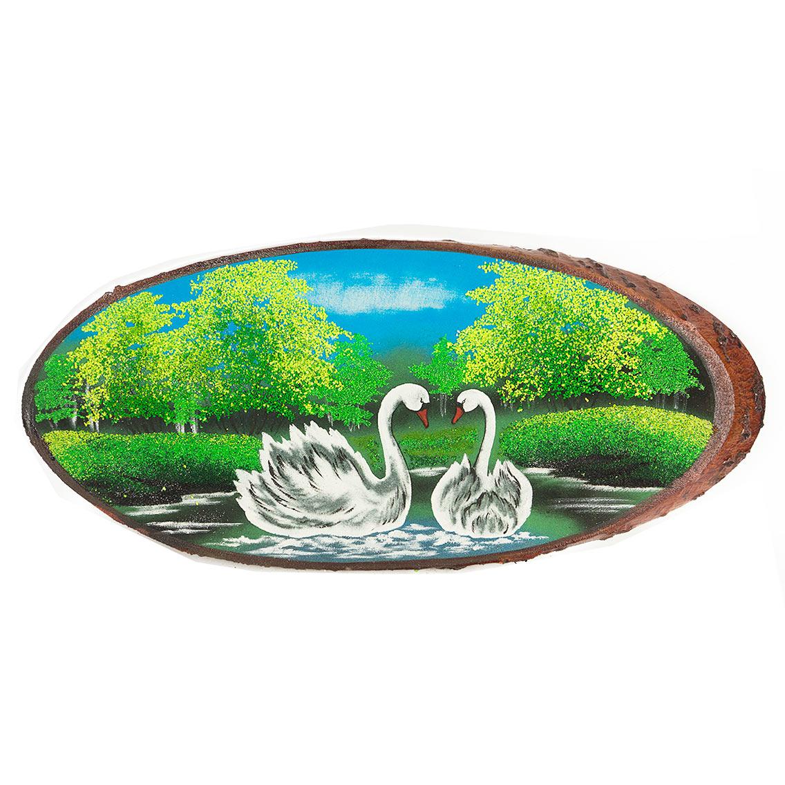 Панно на срезе дерева пара лебедей горизонтальное 65-70 см