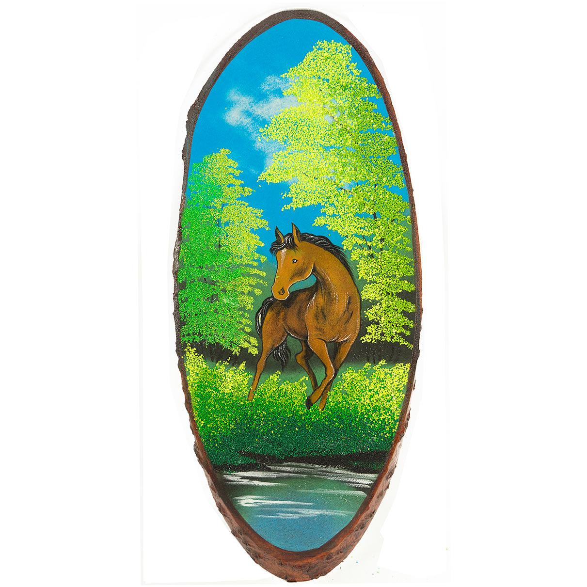 Панно на срезе дерева лошадка вертикальное 80-85 см в ассортименте