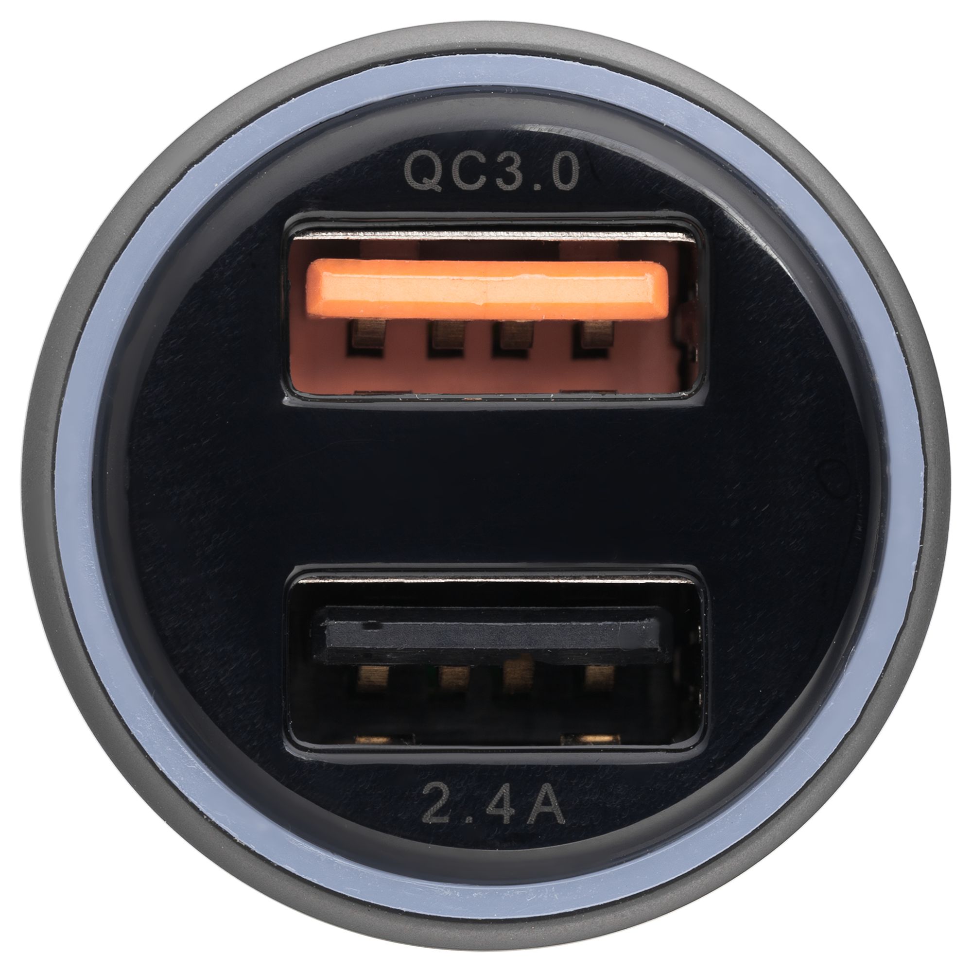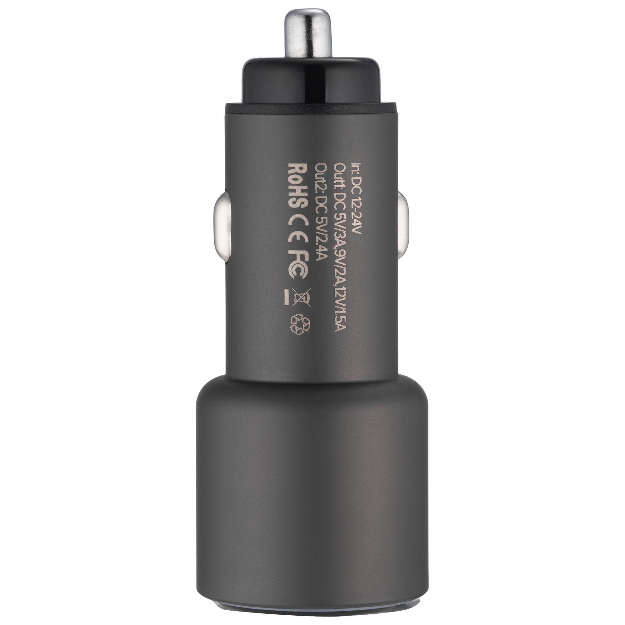 Автомобильное зарядное устройство volto, серое. Размеры 7x2,2x2,2 см; упаковка: 8,3x4,3x3,3 см Материал металл Вес (1 шт.) 80,00 г Транспортная упаковка 31,0x19,0x21,0 см Вес 8,00 кг Объем упаковки 0,012 м? Количество в упаковке 100 шт. Виды нанесения LM3-Лазерная гравировка по металлу Компактное устройство-переходник с двумя портами USB подключается к прикуривателю автомобиля и используется для зарядки мелкой электроники. Один из портов поддерживает функцию быстрой зарядки Quick Charge 3.0. 2 USB-порта; Входные параметры: 12–24 B, 0,35 А; Выходные параметры: – выход 1 (QC): 5 B, 3 А/9 B, 2А/12 B, 1,5 А – 18 Вт; – выход 2: 5 В, 2,4 А; Дополнительные переходники и шнуры в комплект не входят.
