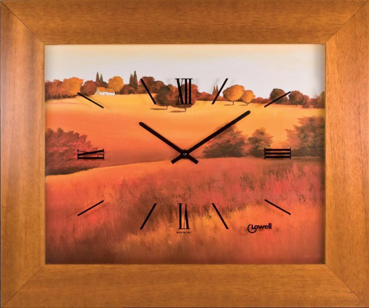 Настенные часы lowell 11296. Настенные часы Lowell 11296 Современные часы – картины модель Lowell 11296 Итальянского Бренда Lowell великолепный подарок и украшение интерьера. Яркие и привлекательные, создающие ощущение настоящего живописного полотна, они станут изюминкой любого помещения и интерьера. Абсолютно новый формат часовой продукции: постеры работ известных художников (Ван Гог, Ханс Пос, Андреа Мантенья), это копии старинных географических карт, объединенные с часами, зеркальные и стеклянные часы. На циферблате прямоугольной формы полноцветное изображение деревни в поле. Временные рамки обозначены большими римскими цифрами и визирами, которые напечатаны умелыми мастерами на внутренней стороне стекла вручную шелкографическим методом трафаретной печати. Корпус выполнен из высококачественного дерева, окрашен в цвет вишни - этот природный материал внесет психологический комфорт в помещение. бесшумные кварцевые немецкой фирмы UTS. Произведены часы Бренда Lowell в Италии, начиная с 1972 г. Характеристики Lowell 11296Механизм - кварцевыйРазмер - 61 х 51 смКорпус - деревоПроизводитель (страна) - Lowell (Италия)