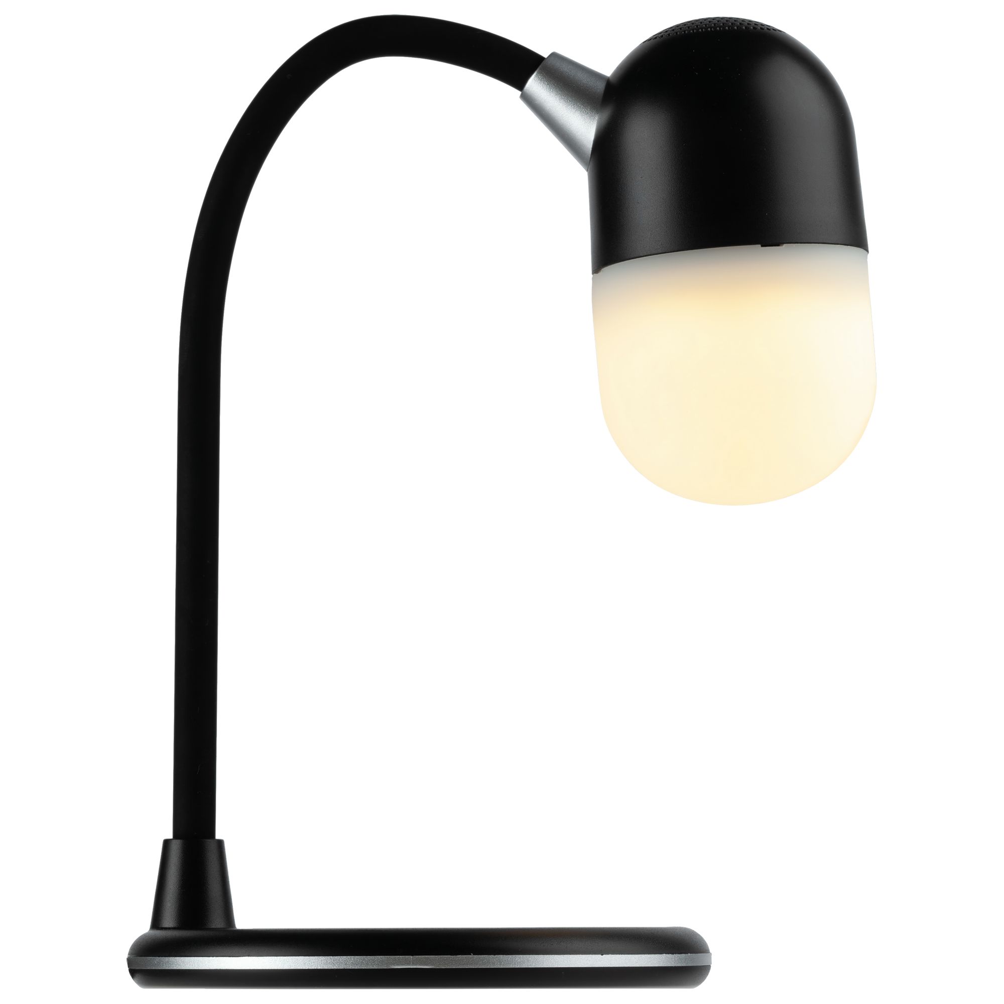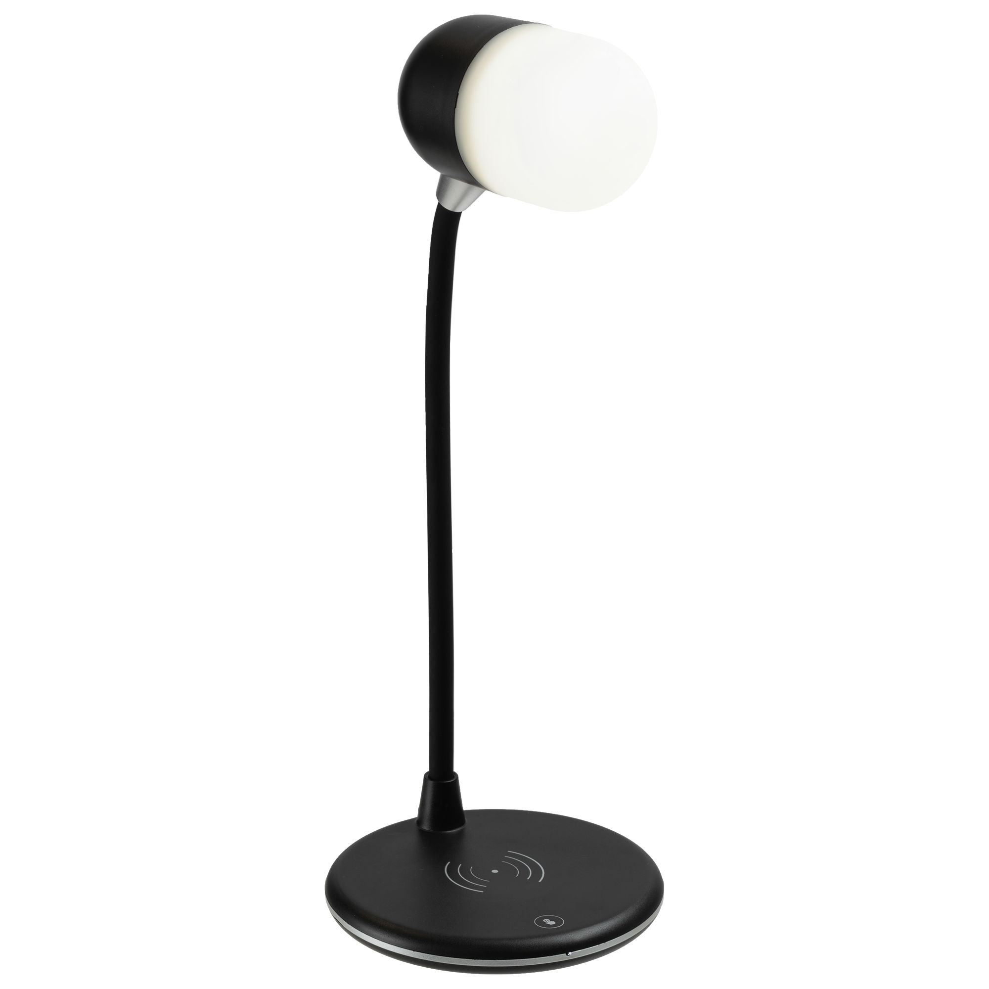 Лампа с колонкой и беспроводной зарядкой lampaton, черная. Размеры диаметр 12 см, высота 34 см. упаковка: 13x13x16,5 см. Материал пластик Вес (1 шт.) 550 г Транспортная упаковка 67,0x28,0x35,0 см Вес упаковки 11,00 кг Объем упаковки 0,066 м Количество в упаковке 20 шт. Виды нанесения A2-Тампопечать (1 цвет) LSC-Шильд металлич. с гравировкой MS1-Металстикер MS2-Металстикер lampaTon — это настольная лампа с bluetooth-колонкой и беспроводной зарядкой. Устройство способно не только осветить рабочее пространство, помочь зарядить гаджет, но и удивить своим мультимедийным функционалом благодаря динамику, встроенному в патрон. Лампа совместима со всеми мобильными устройствами, поддерживающими технологию беспроводной зарядки Qi. Зарядка начинается автоматически при размещении смартфона на поверхности лампы. Мощности встроенной колонки хватает на то, чтобы заполнить звуком помещение до 20 м. Гибкое основание Количество светодиодов: 7 (теплый желтый) + 7 (холодный белый) Три различных уровня освещения (теплый, холодный и смешанный свет) Регулируемая яркость Bluetooth 4.2 Мощность динамика: 3 Вт Вход беспроводной зарядки: 5В/3А Вход беспроводной зарядки: 5В/1А Поставляется в подарочной упаковке.