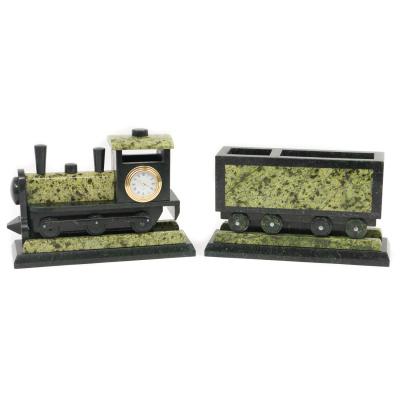 Часы сувенирные паровоз камень змеевик
