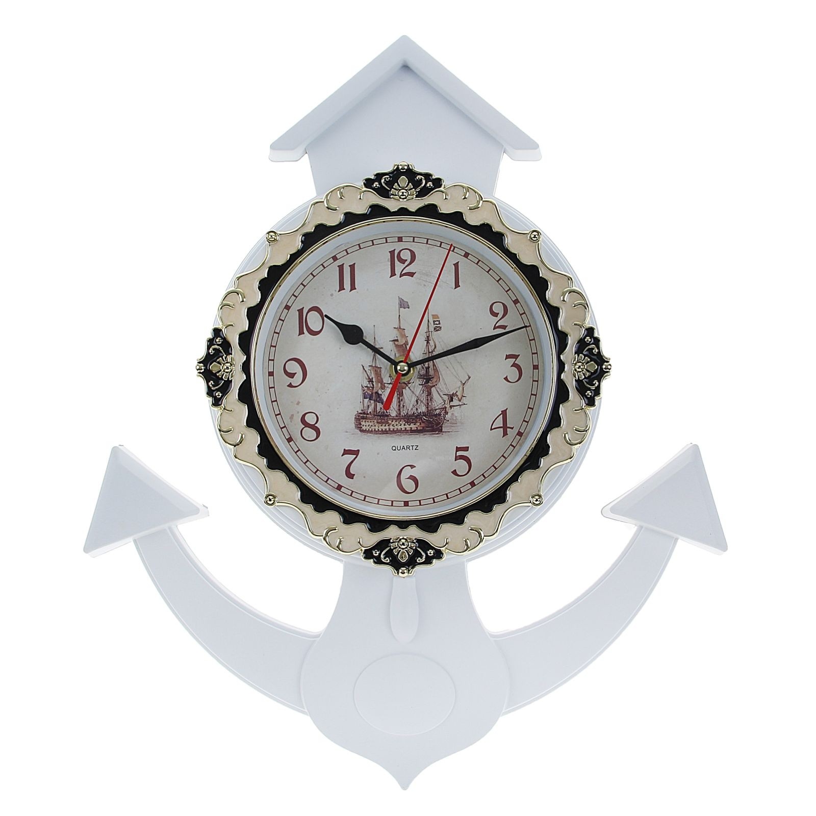 Часы настенные белые якорь на циферблате корабль 36х4х41 см