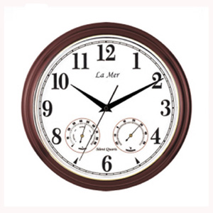 Настенные часы с термометром и гигрометром la mer gd 115020. Настенные часы с термометром и гигрометром La Mer GD 115020 Настенные часы с термометром и гигрометром La Mer GD 115020 имеют надежный кварцевый механизм и плавный ход секундной стрелки. Часы изготовлены из пластика и показывают кроме времени еще и температуру и влажность в помещении. Представляют из себя современную и стильную модель для дома и офиса. Цвет циферблата- серебро. В нашем интернет-магазине можно купить недорогие кварцевые часы с термометром и гигрометром La Mer GD 115020. Настенные часы с термометром и гигрометром La Mer GD 115020 и их характеристики: Размер: 32,4x32,4x4,4 см Механизм: кварцевый. Термометр. Гигрометр (измеряет влажность) Размер, см : 32 Цвет : Коричневый Материал : Пластик Механизм : Кварцевый Функции : Термометр, Гигрометр
